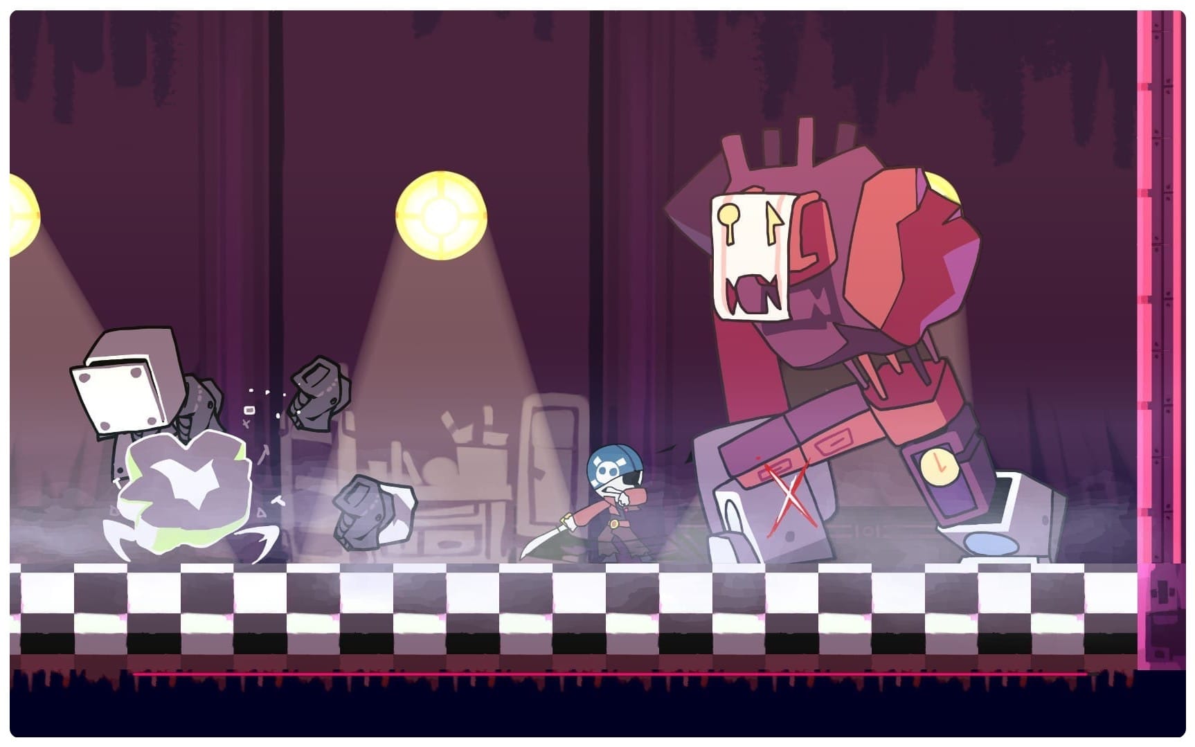 The switch to 3D allows for the existence of stages with multiple levels, and the sheer amount of stuff going on immediately elevates it above the flat design of the original’s dungeons. The second biome, known as The Gallery, features a background of moving cubes filled with artifacts, some of them living creatures. And the third biome, a Grecian-inspired level of floating islands, sees you zip-lining up and across the area to reach the next piece of land, where you’ll battle your foes.