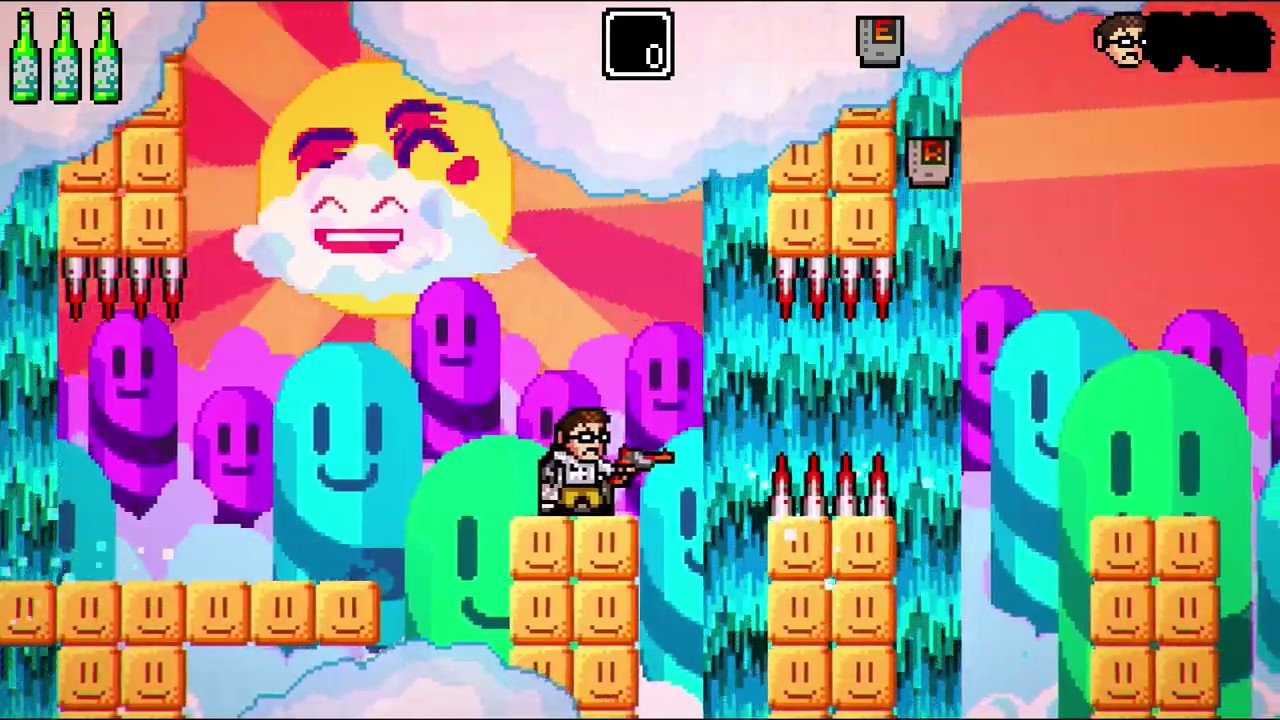 As the Nerd, you can run, jump, and shoot in all eight directions as you navigate through levels that are supposed to frustrate you with the same obstacles which would frustrate the Nerd in his videos. Along the way, you’ll meet some of the Nerd’s friends and find his stuff, which will grant you new abilities in order to find more hidden goodies and navigate levels more easily. In that basic sense, the games are the same as they were back when they were first released in this remaster. It’s the differences however that make them an interesting topic of conversation.