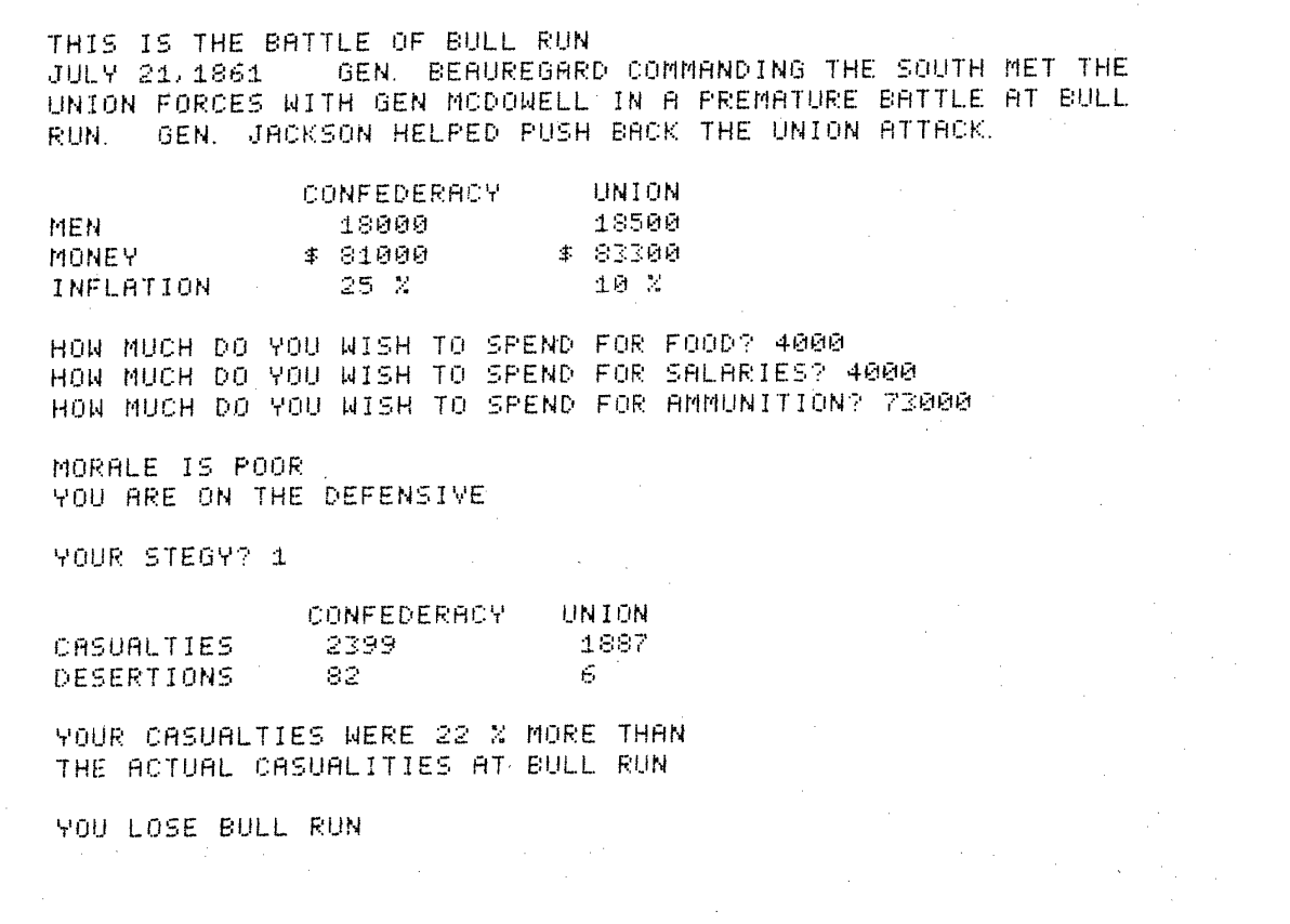 Sample run of Civil War game. Source: Digital Equipment Corporation.