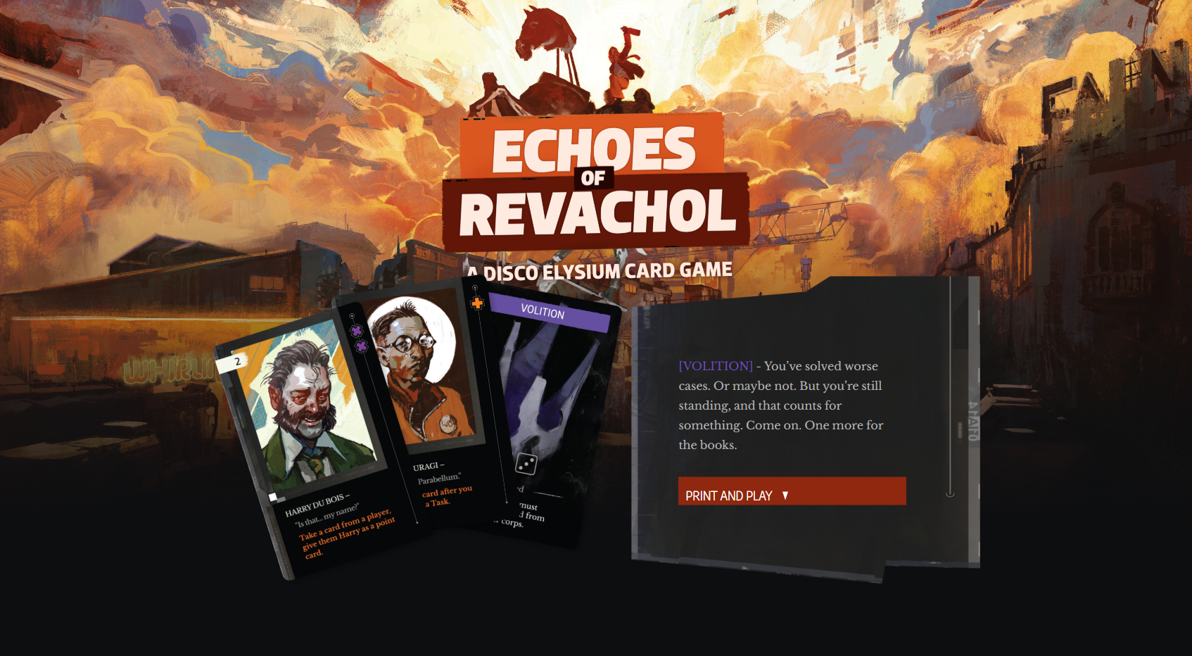 In a bid to make the project as accessible to as many people as possible, Echoes of Revachol’s creators have published not only the files needed to print and play it but also a guide to getting yourself a set of physical cards using third parties like MakePlayingCards.com.