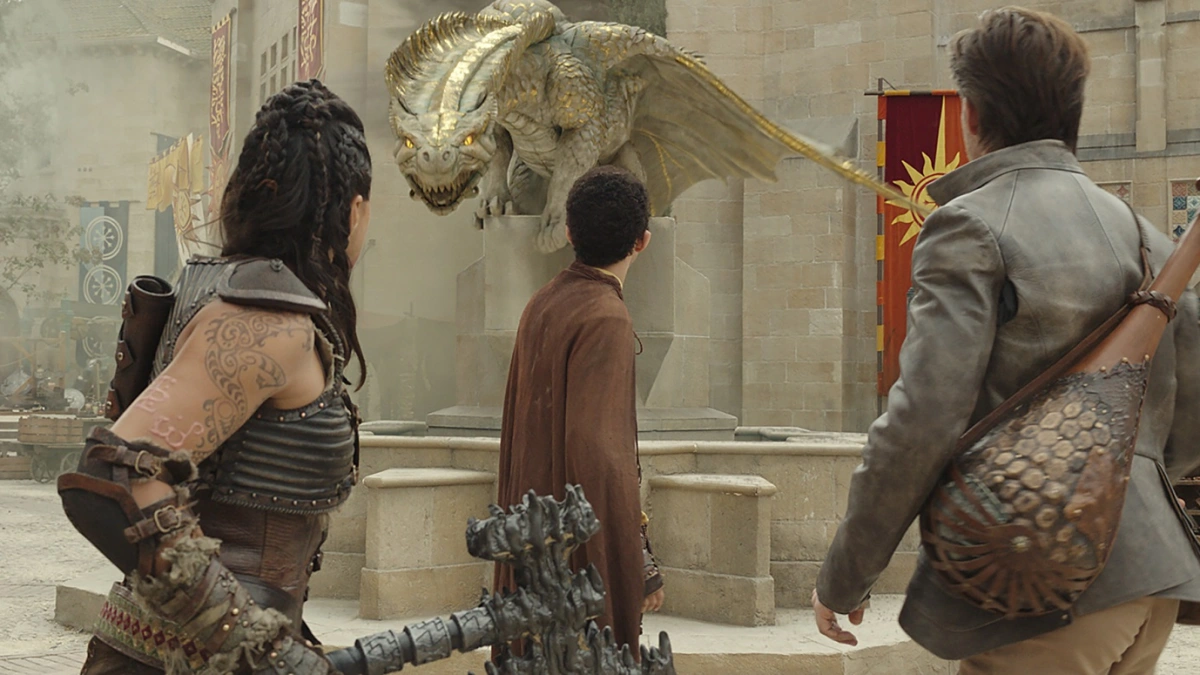 First, I must say that I am ridiculously impressed by the number of practical effects used in this movie for creatures and character makeup. The one that caught my attention the most was the practical puppet costumes for the Dragonborn; perhaps I'm a little biased, but it was my favorite effect in the film. These costumes really sold the mass and complexity of these people, differentiating them based on color and age. Beyond these, though, there were also practical puppet costumes for Aaracokra (JOHNATHAN!) and Tabaxi. It was amazing to see the level of skill and physical animation that went into bringing these magical species to life.
