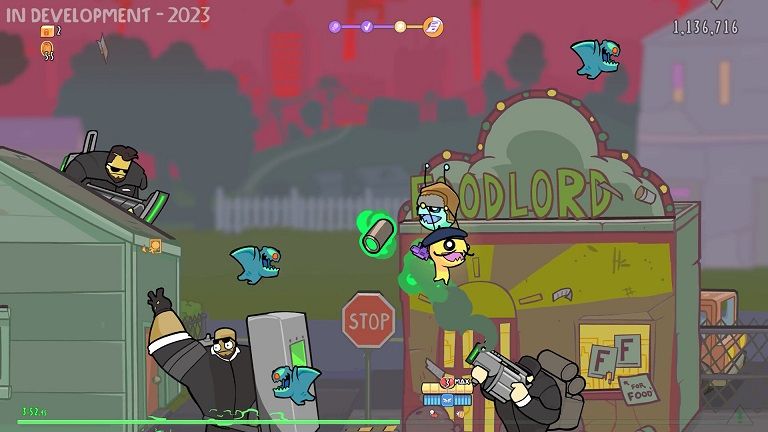 Invasion takes Alien Hominid's Metal Slug-inspired gameplay and pushes it in a roguelike direction, presenting the player with a randomized mission map and a range of upgrades. It's engineered for co-op, too, so up to three friends can join you on your quest to bite off every human head in sight.