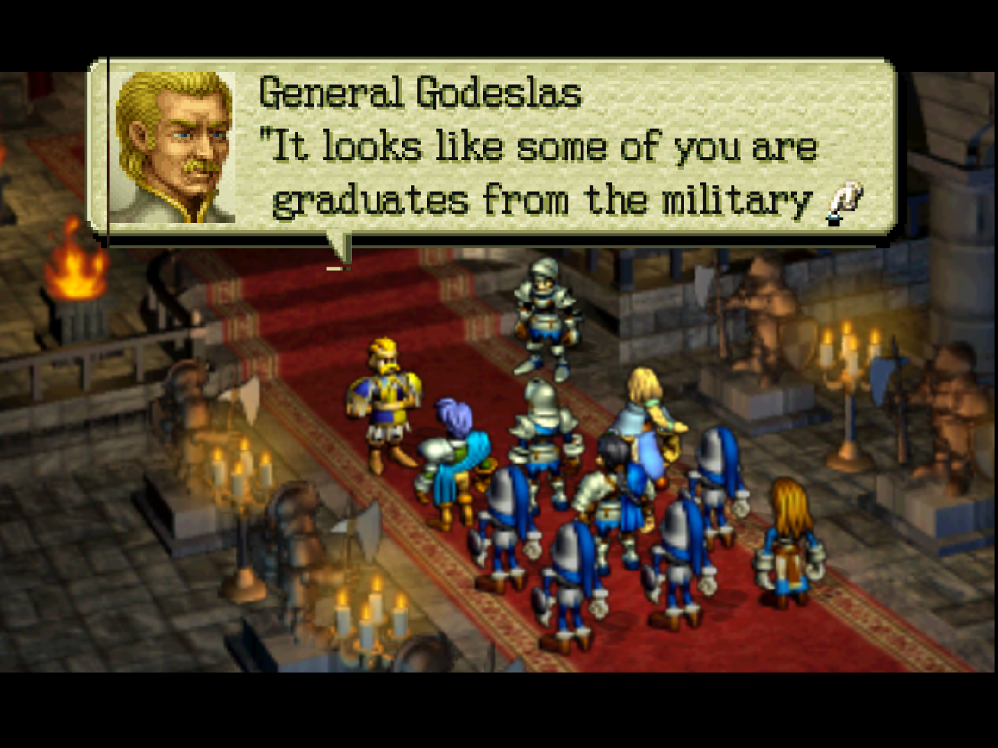 The groundwork for the story had been laid out, though only players dedicated enough to finish Ogre Battle would have known about it. At the end of the game, Empress Endora says that she had only started her campaign of conquest to rally all of the kingdoms in defense against a greater threat - Romanized as "Rodisti" in the first game, later changed to Lodis - which she describes as a powerful cult. As it turns out, she was right, for the theocratic Kingdom of Lodis begins its own campaign of conquest not even a generation later.