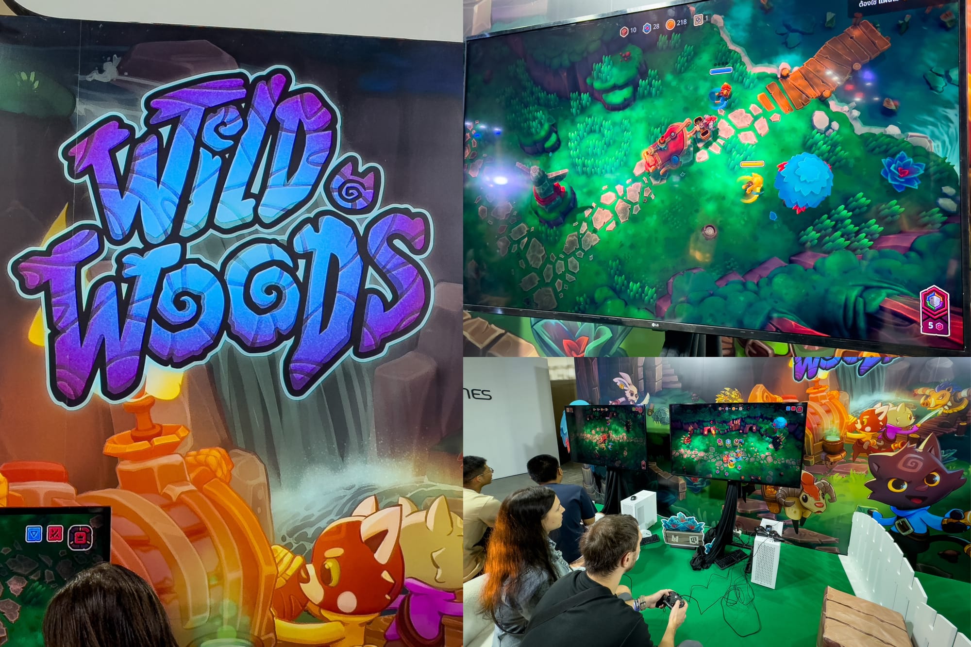 Next, I jumped into some co-op action with Wild Woods from Hamburg's OctoFox Games. Already in early access, this one's an action roguelite designed for 1-4 players where teams of weapon-wielding cats defend a wooden wagon as it travels through an enemy-packed forest. Think Overcooked with a wagon and goblins, and you're getting close. By day, you gather wood and food, and by night, you fend off waves of creatures trying to wreck the wagon. While that's all going on, you must keep the lantern alight; otherwise, you'll be fighting hordes in the dark.