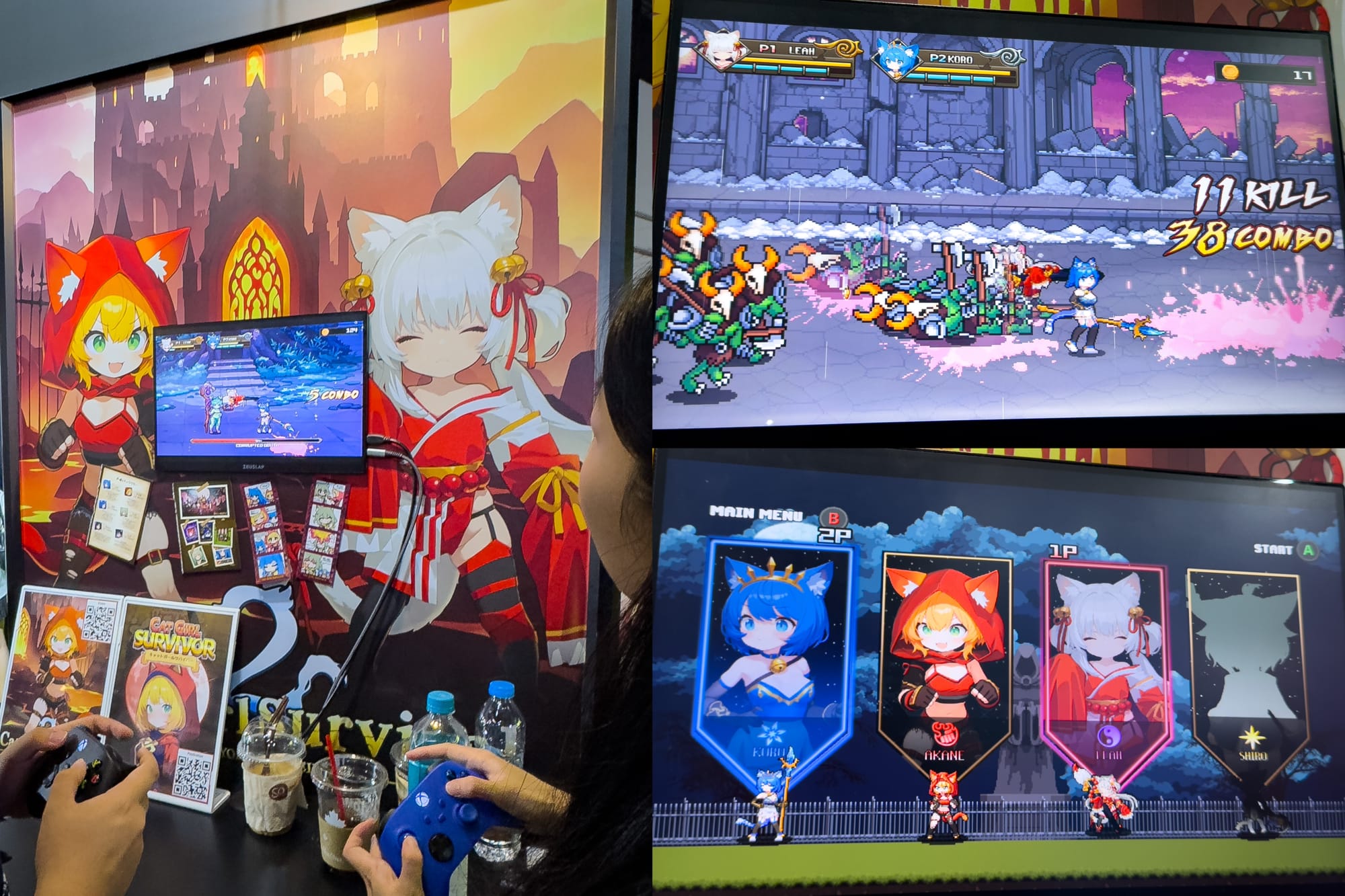 The most kawaii title on the show floor goes to: Cat Girl Survivor 2: Beyond the Veil. While the original leaned towards a 'Vampire Survivor-esque' roguelite loop, the sequel instead shifts to a 2D beat ’em up with very cute art style and local co-op, kind of like a fantasy-styled River City Girls. I swooped in and parked myself on a stool, playing co-op with the dev as magical cat girls against waves of monsters. Combat is snappy and old school with light and heavy attacks, jump kicks, dashes, and big flashy special moves.