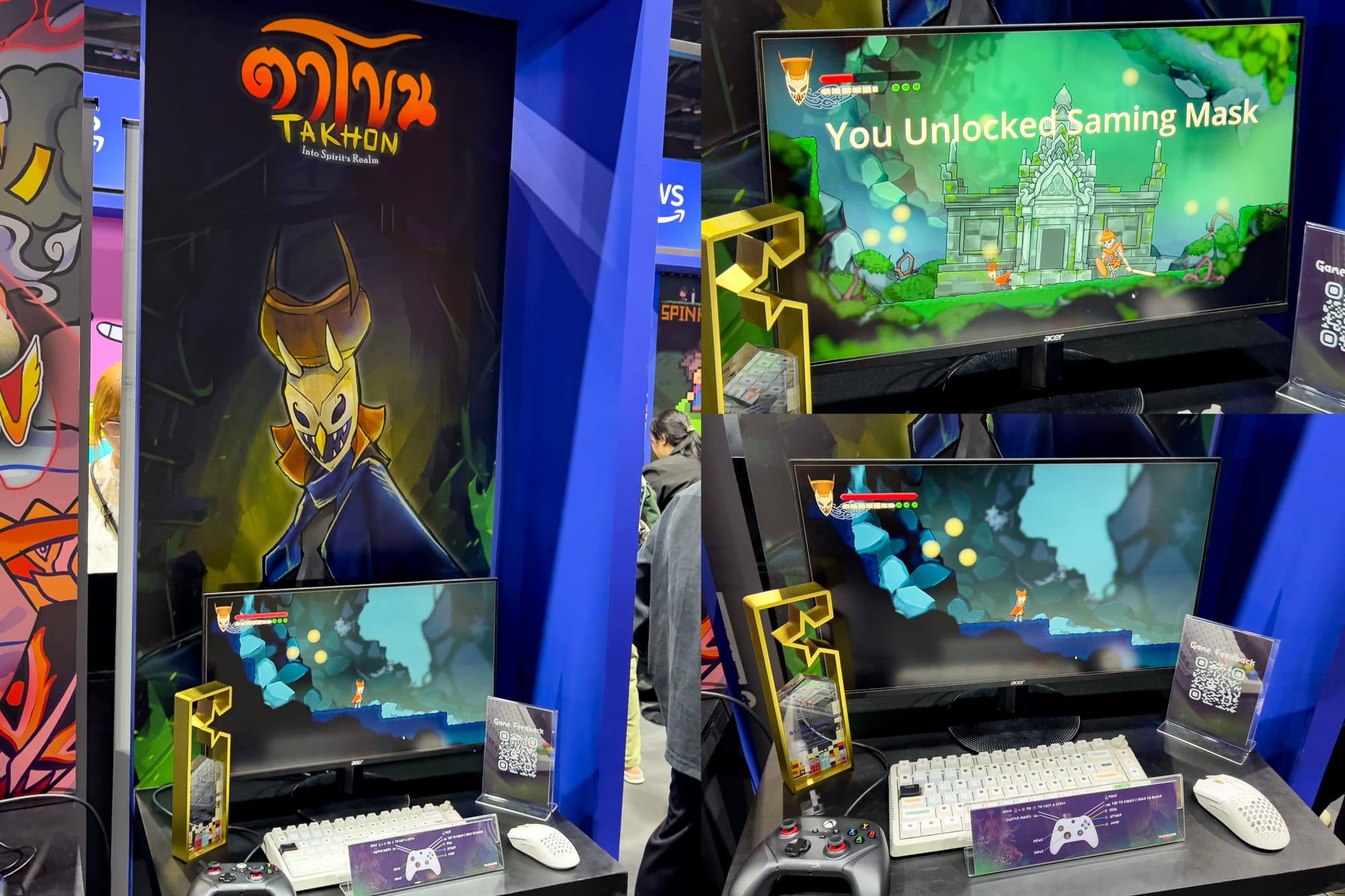 This was a treat. TaKhon is an unreleased student project from PlayAlone Team, inspired by Thai folklore and the 'Phi Ta Khon' ghost festival in Thailand. It won First Prize in the Software Game category at the Thailand Game Festival 2025. Here, it was highlighted in a special 'Thai Games' indie section, and it drew me in with its striking art of ghost masks and spirits.