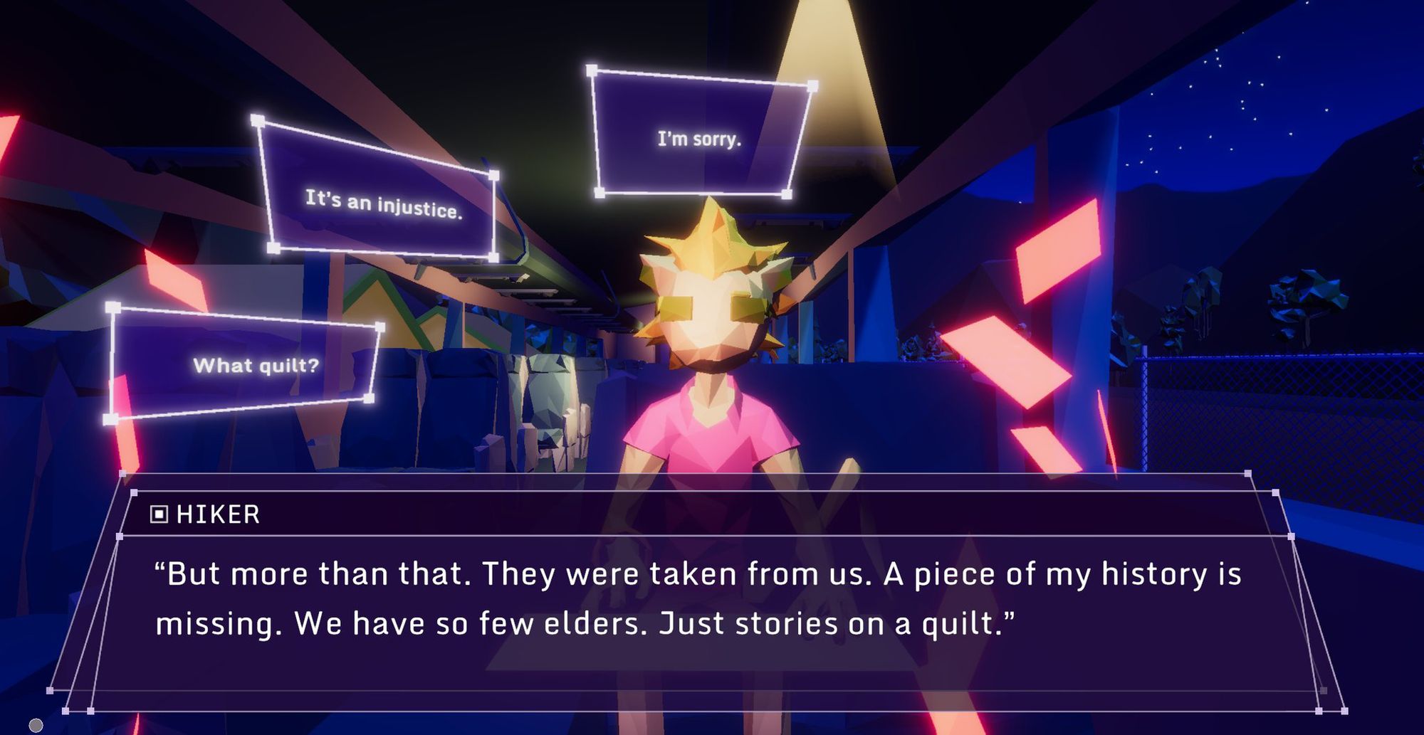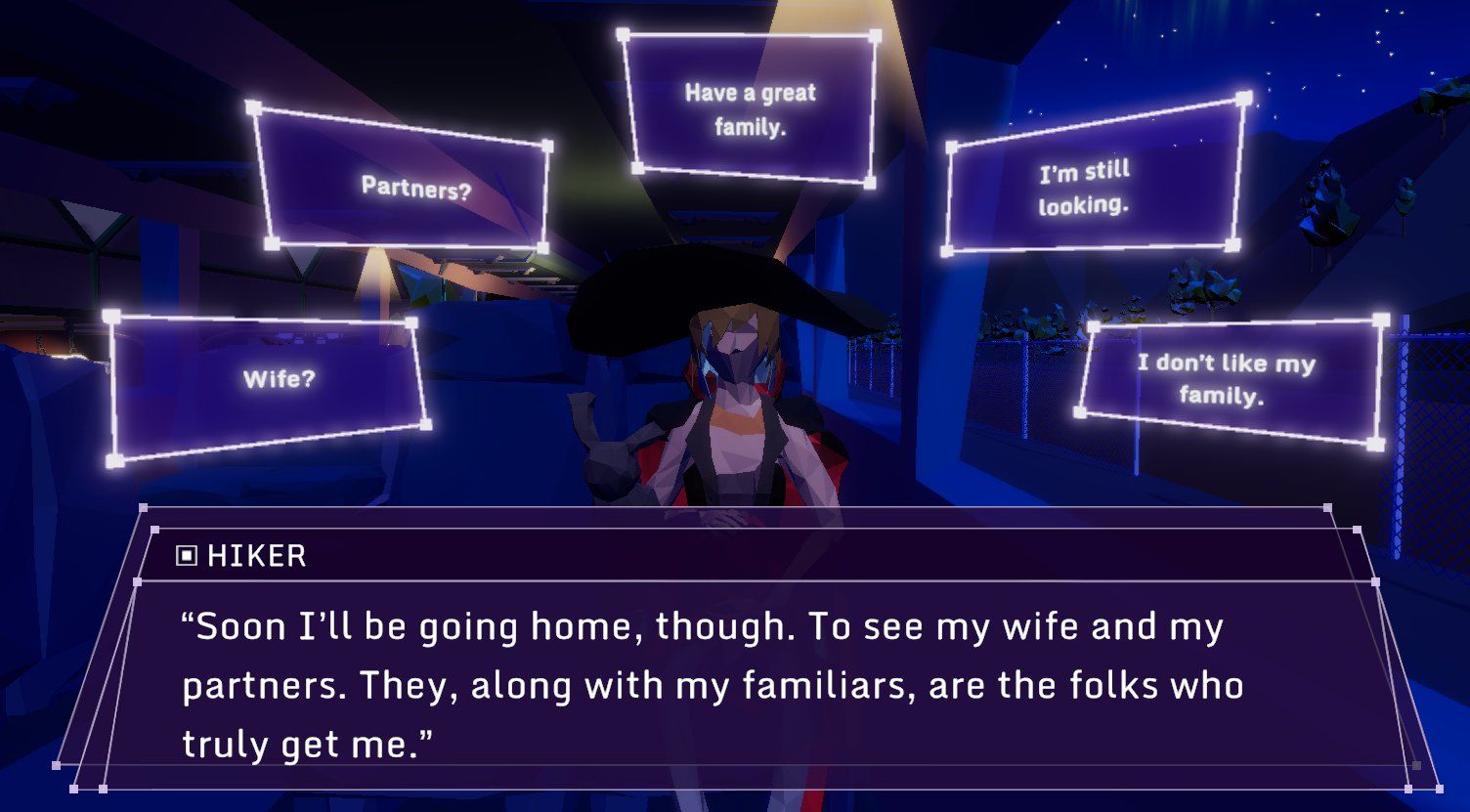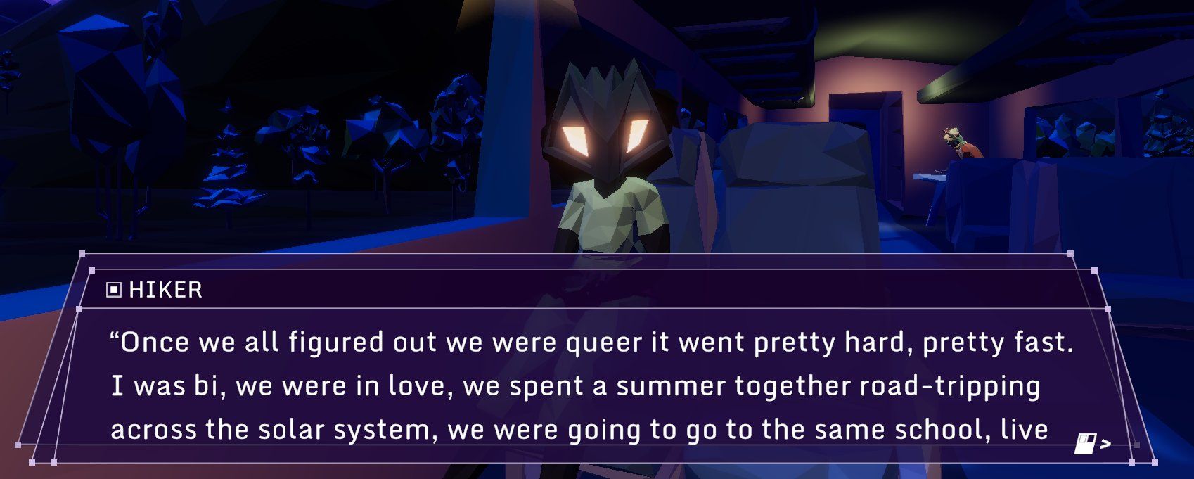 I found that Glitchhikers is not necessarily a game with LGBTQ+ representation, in that you will find a character who is as much of a disaster-bi as you are. It is more of a game where you get as much out of it as you interpret from the many conversations. One reviewer said that it helped them look inward to ponder their gender identity. I can’t say that I had the same experience, but it reminded me of how important it is to listen to others and hear their perspective. For now, I have yet to hear stories from train passengers or hitchhikers revolving around explicitly queer material.