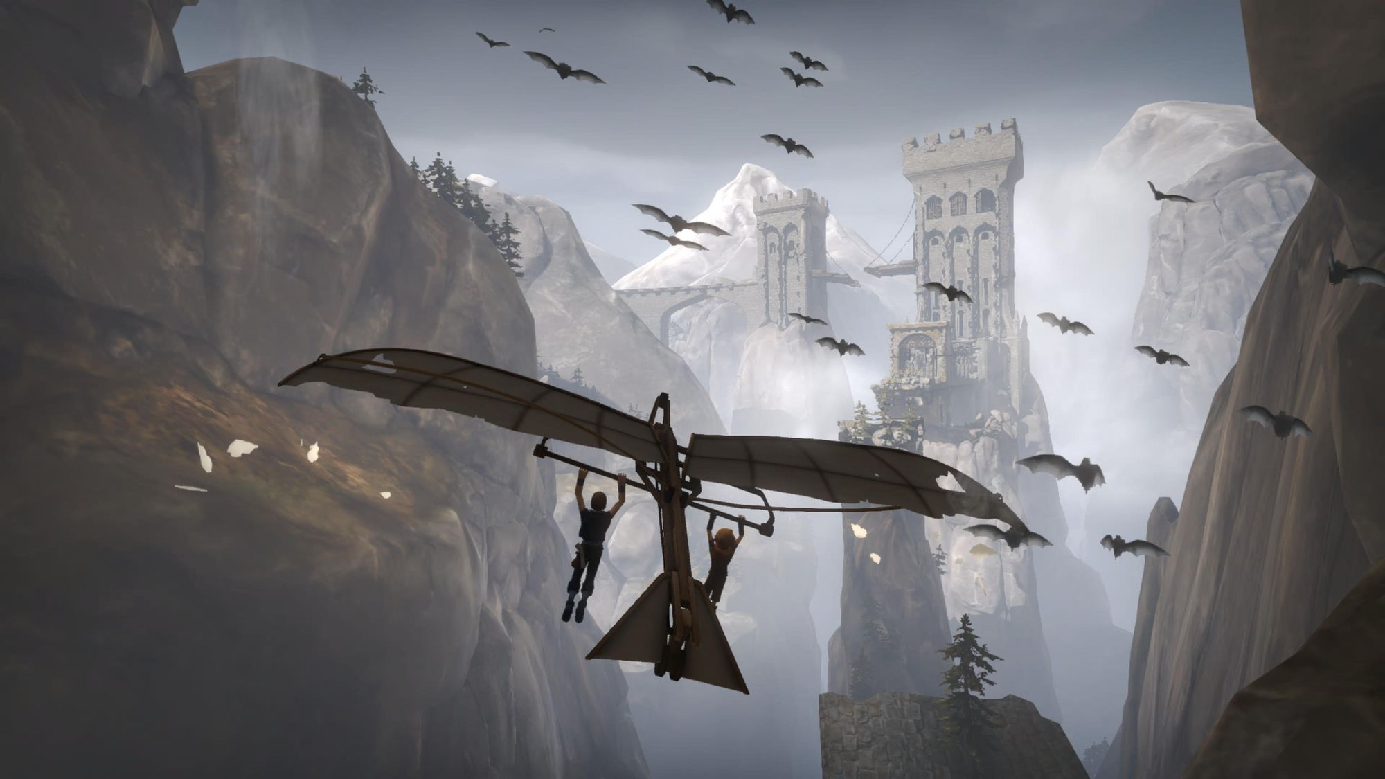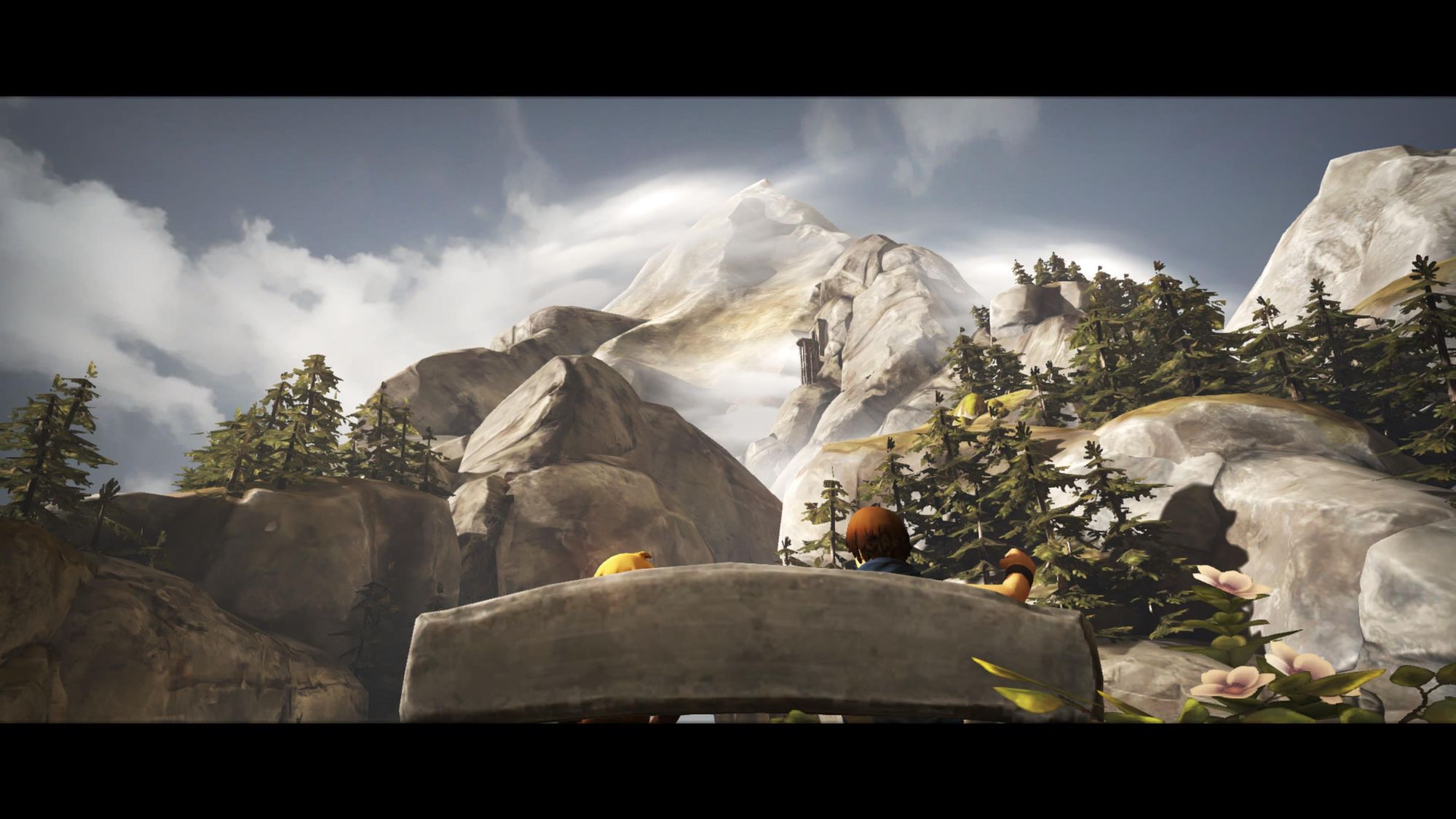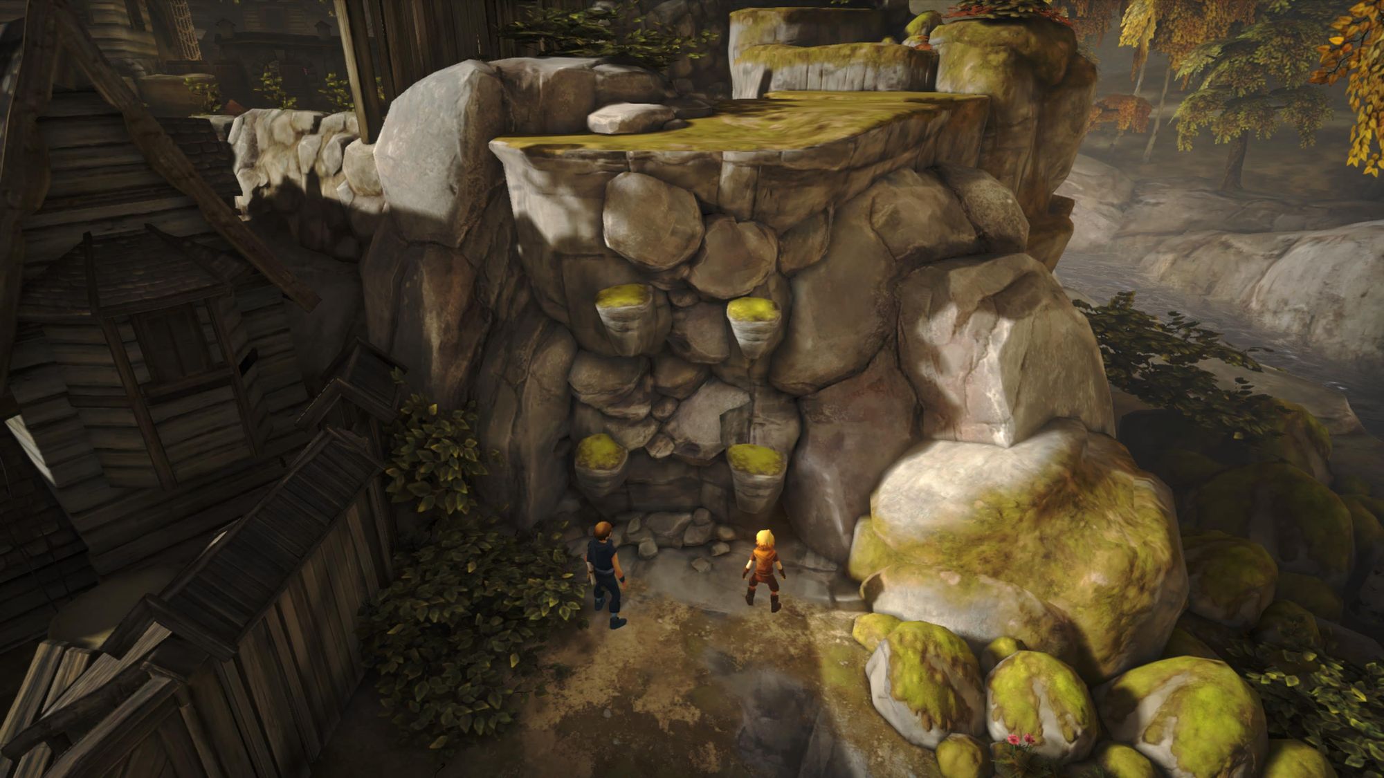 This is not immediately simple. Controlling two characters at once is not a natural feel. Moving in sync or using the triggers to get them to climb up cliff ledges at the same time can have one feeling uncoordinated, like the age-old game of rubbing your belly and patting your head at the same time. At first, I had to make sure to keep the older brother on the left side of the screen and the younger one on the right, so they matched with the sticks. The discomfort makes you feel less comfortable and capable, in line with two brothers learning to work together as they leave home on a dangerous adventure. Like any sort of relationship between two people, it takes time and effort to make it effortless.