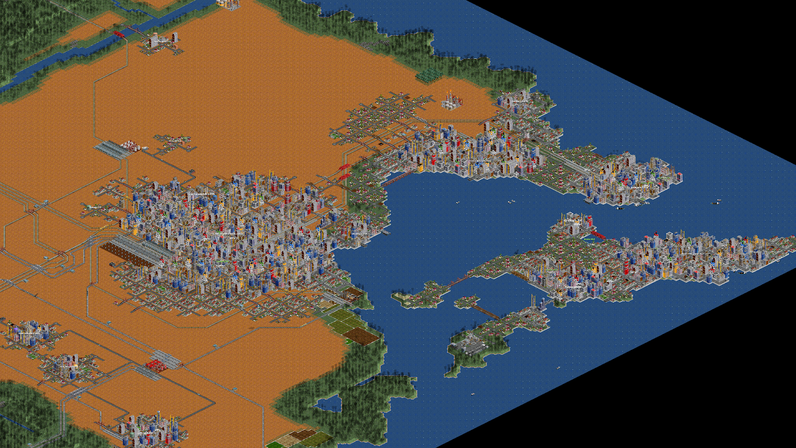 As I zoom out to look at the map, I can’t help but feel a sense of pride and satisfaction watching my little planes, trains, buses, transport trucks, and ships zip around the map. While far from perfect, and certainly nowhere near optimal, I have connected all the major cities and industries in a small section of my OpenTTD map, allowing them to grow unfettered as I stand by and watch the cities expand.