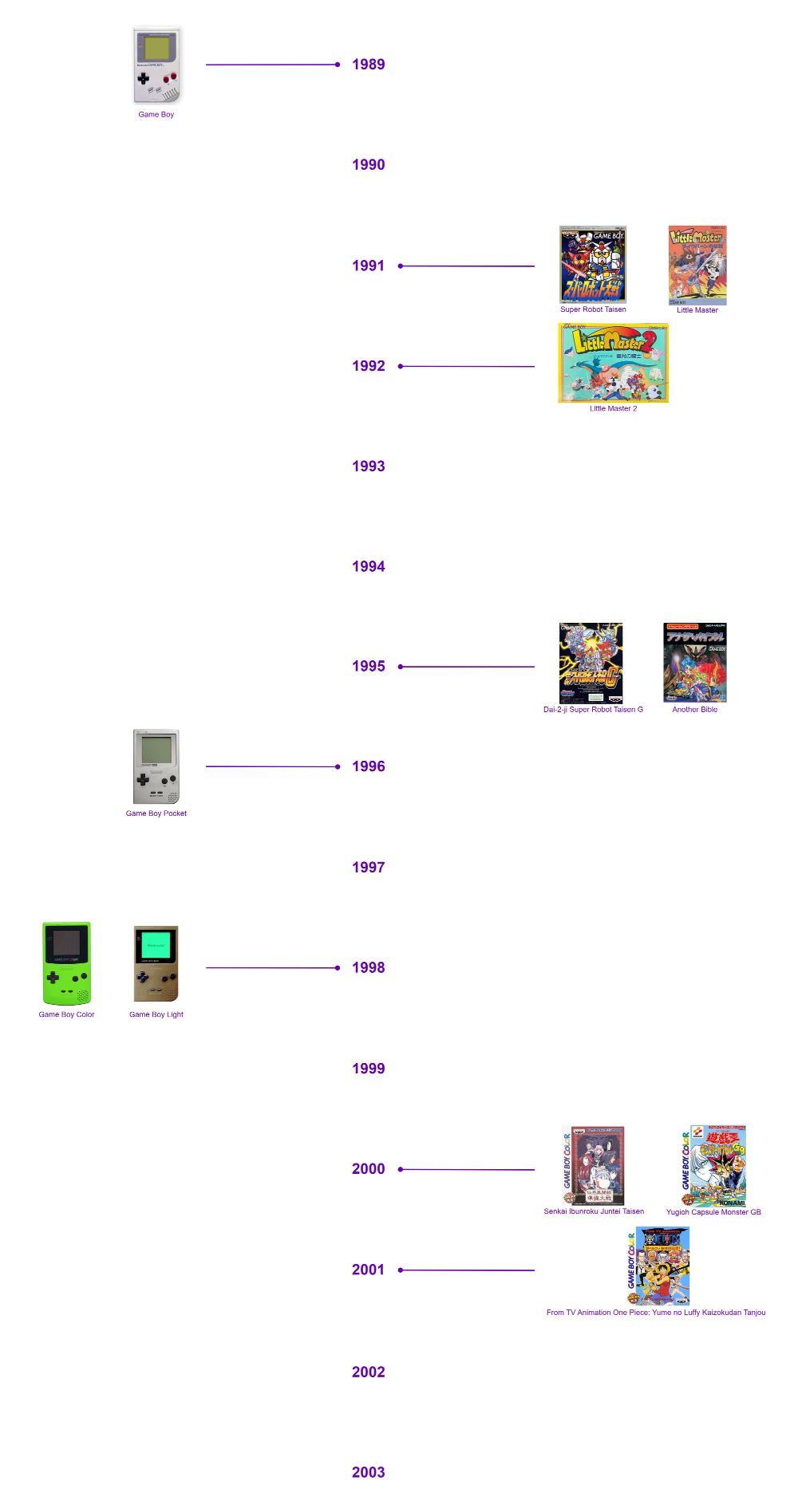 - The title was released for early Game Boy models (GB) or Game Boy Color (GBC) between 1989 and 2003.