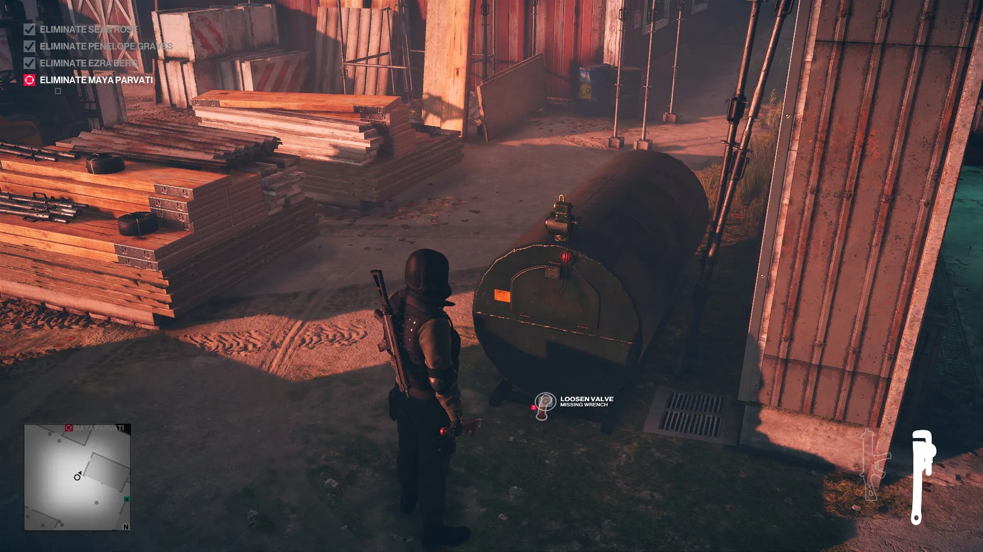 Button prompts are part and parcel of videogames, especially when it becomes part of player direction. Contextual prompts, such as the now infamous ‘press X to Jason,’ can advance quests or plots in game. Countless games dedicate a single button simply for interacting with in-game objective items. Oftentimes, though, these prompts directly advance player progress: pushing the button opens the door to the next room, for example. It can even reach a point where players simply search around for a prompt to appear and move things along rather than playing through instinct or intuition. In Hitman, these prompts don’t do any work for the player or directly help their progress along. They don’t even fully explain the effects of the action: though it’s not a great logical leap on the player’s part to assume that creating a gas leak leads to some explosive opportunities, it is noteworthy that the prompt simply says ‘create gas leak’, rather than something less ambiguous like ‘create gas leak [BECOMES EXPLOSIVE!]’. Ambiguity also bleeds into, say, the size of the explosion, or the radius that an NPC with a naked flame needs to be in to trigger it.