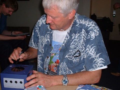 Charles Martinet signing my GameCube in 2002. On the right, my signed GameCube in 2020. Source: Author.