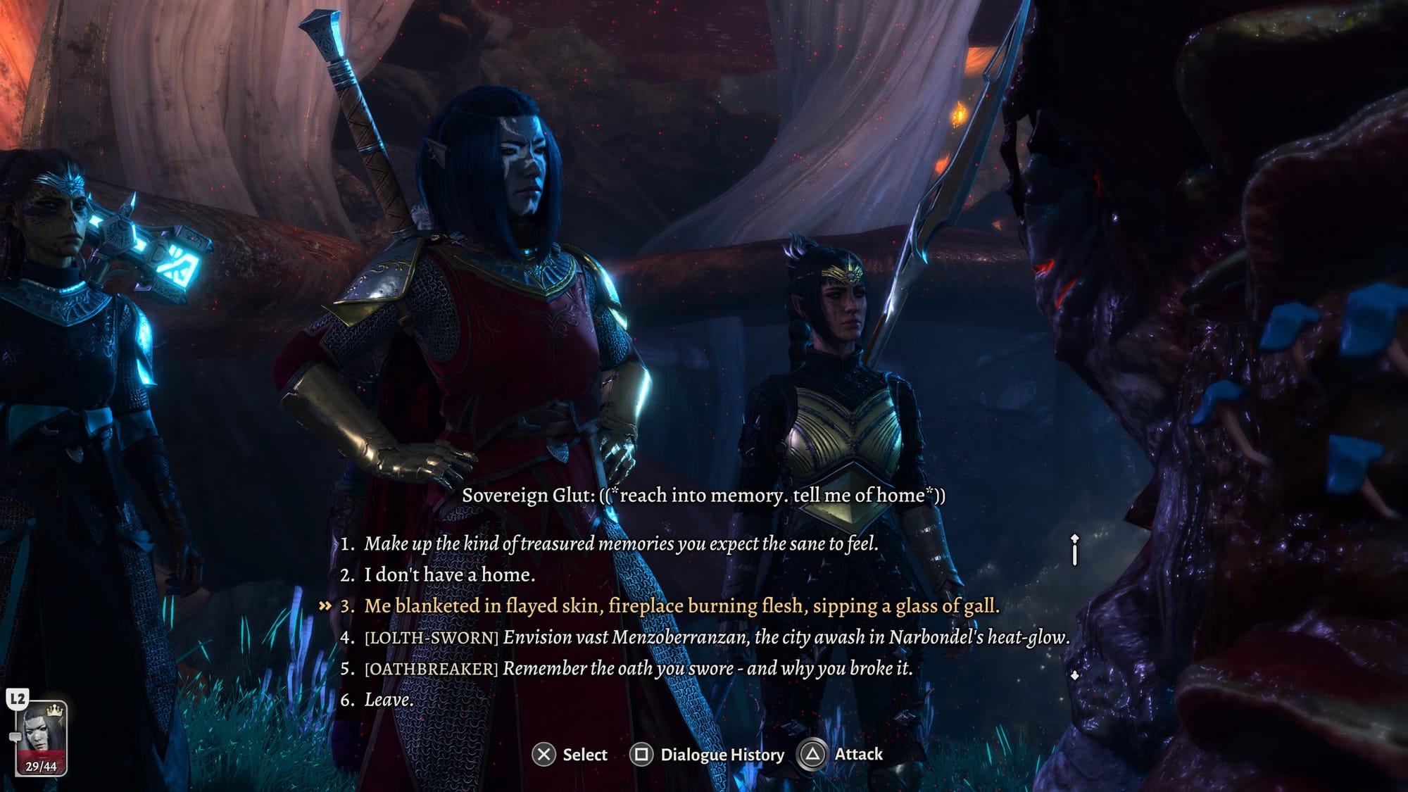 For me, it also helped to make someone who looks evil. My first Baldur’s Gate 3 run was with a pretty standard-looking silver male Dragonborn, and now in my current run, I’m a female Drow Dark Urge with face tattoos and ominous-looking heterochromia.