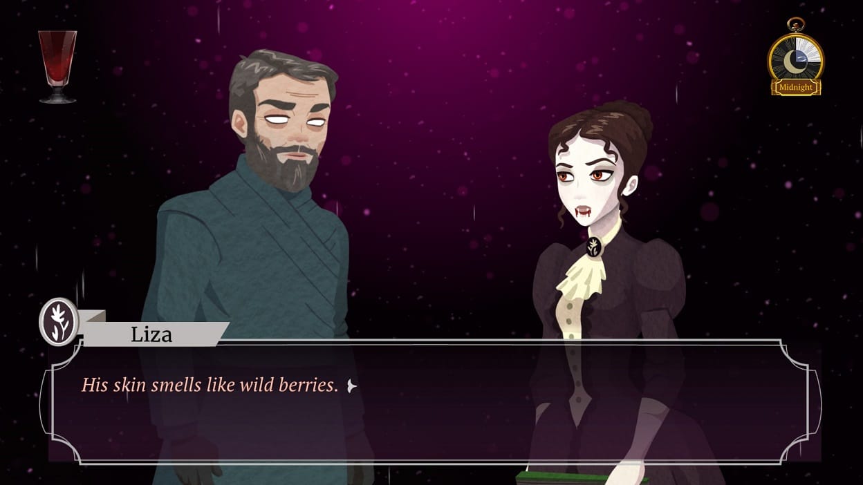 This essential cruelty is essential to the story of Cabernet, which leans heavily into the depictions of vampires as an aristocracy of the night. The Higher Society serves as an anal0gue of the gentry class of the late colonial period, with the humans standing in place of the serfs. Most of the side quests have Liza meddling in the sad affairs of individual humans, either for her own benefit and amusement or in the benign role of a humanitarian, but either way, it's clear that she's doing so as a person in a position of superiority. Ultimately, the player gets to choose who gets a happy ending and who continues to spiral down into despair.