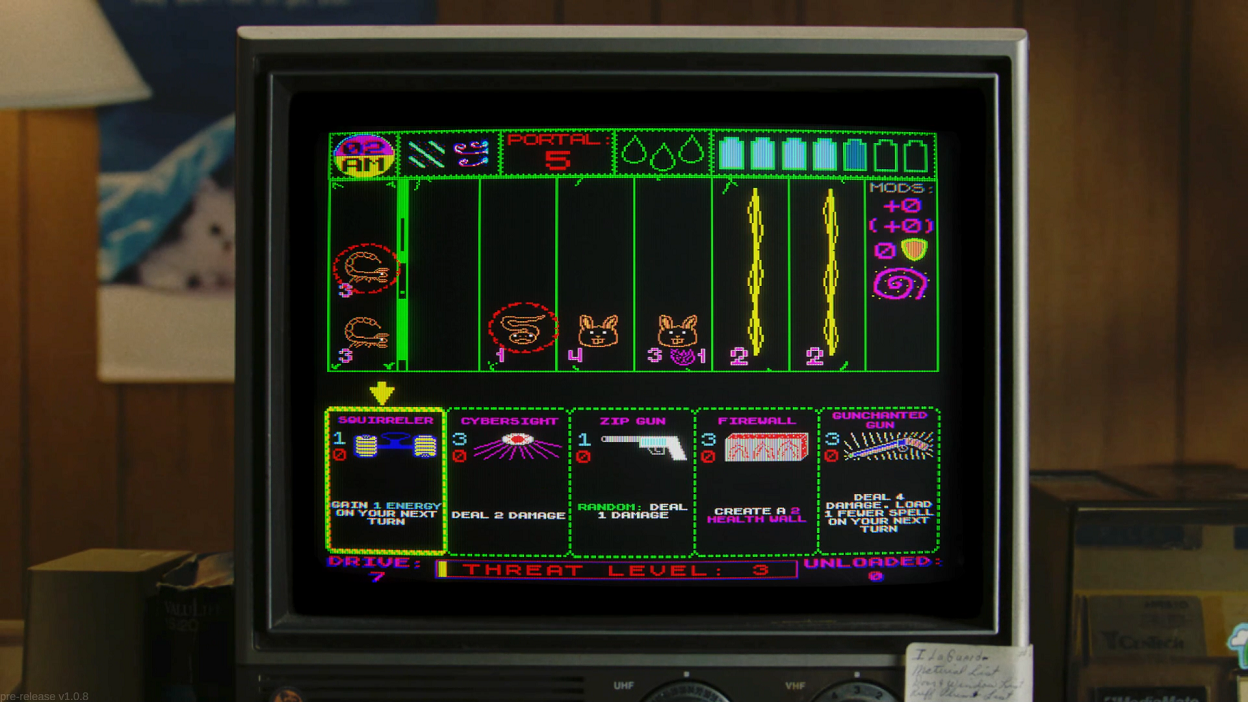 SPELLHACK!! is a strategy deck-builder with some tower defense mechanics and an aesthetic inspired by computer games of the late 80s. The core gameplay, with some similarities to other titles, is just far enough removed from genre standards to break it out from the pack.
