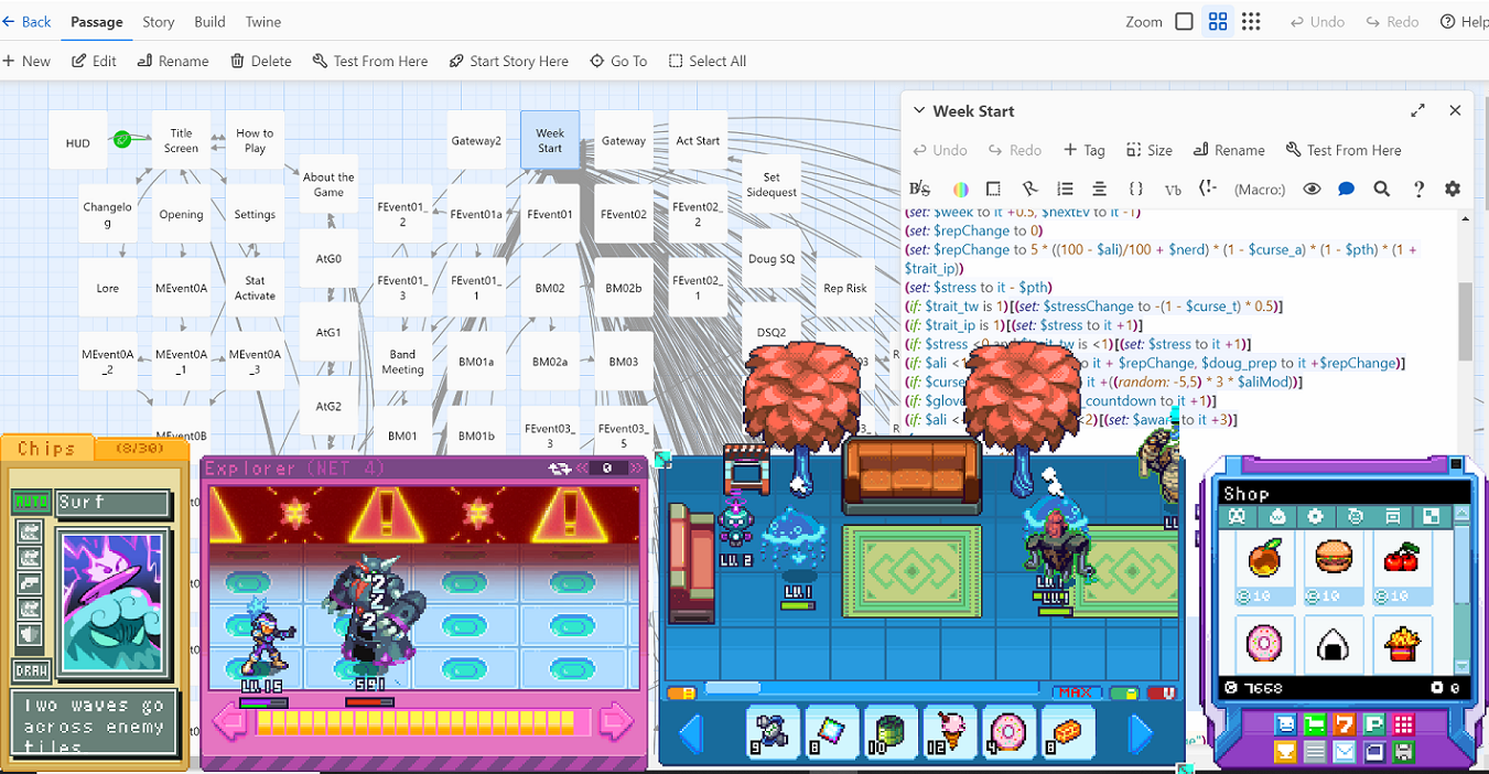 The game itself is an autoplaying RPG modeled heavily on the Mega Man Battle Network series. The player drops the BIT - the main character - in one of several areas in the explorer frame, where the character will fight through a dungeon with minimal to no direct input. A second frame houses the simulation element. The player can keep a certain number of supporting characters, including robots that periodically yield resources and programs that, as long as they are fed and cared for, allow the BIT to perform special attacks.