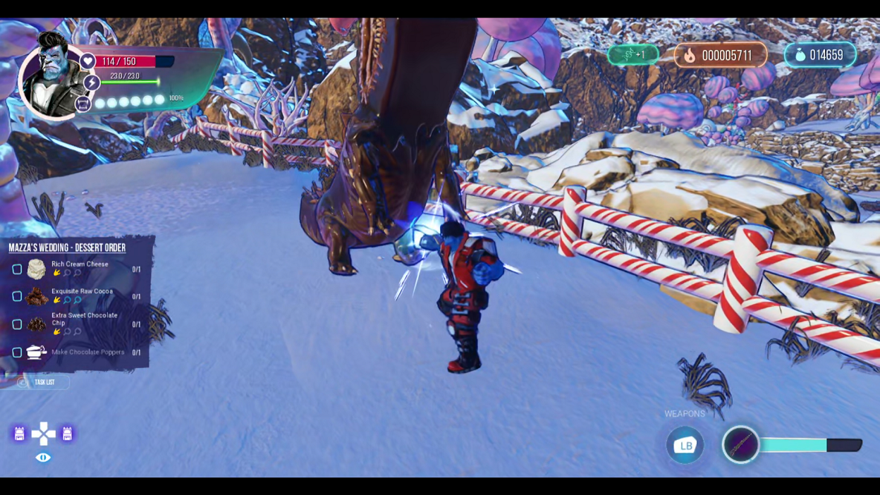 The gameplay loop of HANGRY centers on visiting various planets, tracking rare animals, and taking them down while dealing with robotic game wardens. The combat is fairly standard for action RPGs - using combos of light and heavy attacks plus specials - but HANGRY also has a focus on stuns. Each enemy has a Poise meter that is depleted by rapid, precise attacks and the enemy is knocked senseless if their Poise falls below a certain threshold.