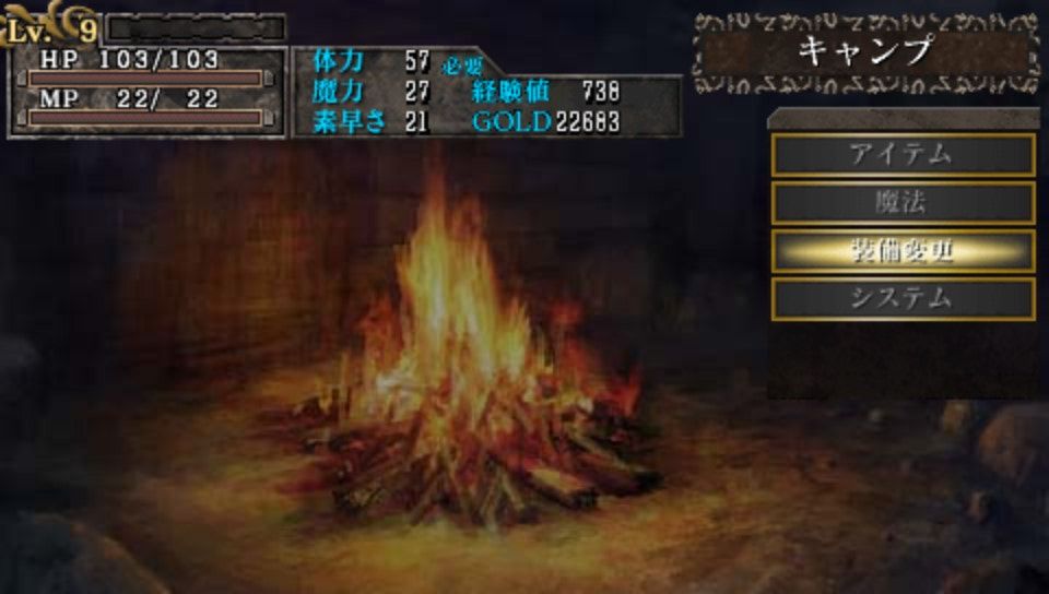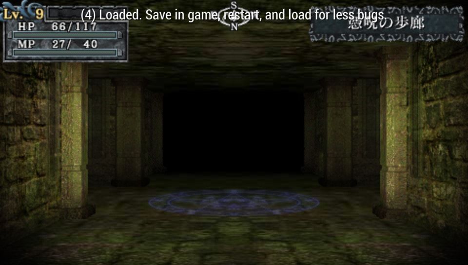 In King's Field 2 and 3, you could move from one end of the map to the other without loading screens getting in your way. But here, you'll see them when changing floors, moving through certain doors (without even changing floor), and even when going into the menu to change equipment. When you consider that the PSP is more powerful than the original PlayStation, and that the dungeons and creatures here are far simpler by comparison to the original console game, the final product is disappointing.