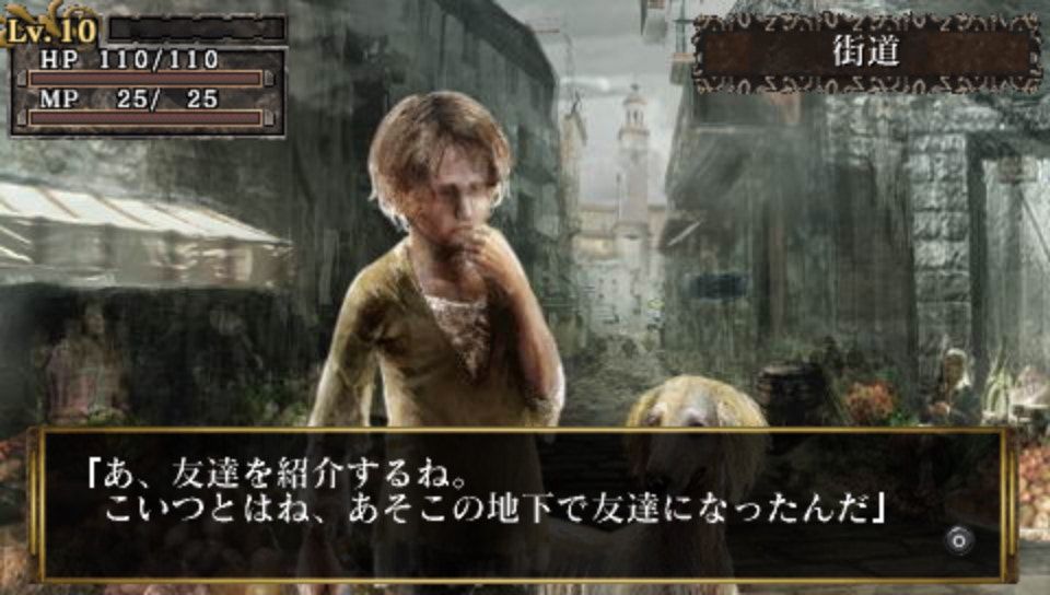While the situation isn't as bleak as in King's Field 3, people have nevertheless lost loved ones to monsters in the maze, while others are still missing (a kid will ask us to find his father who has yet to return, for example).