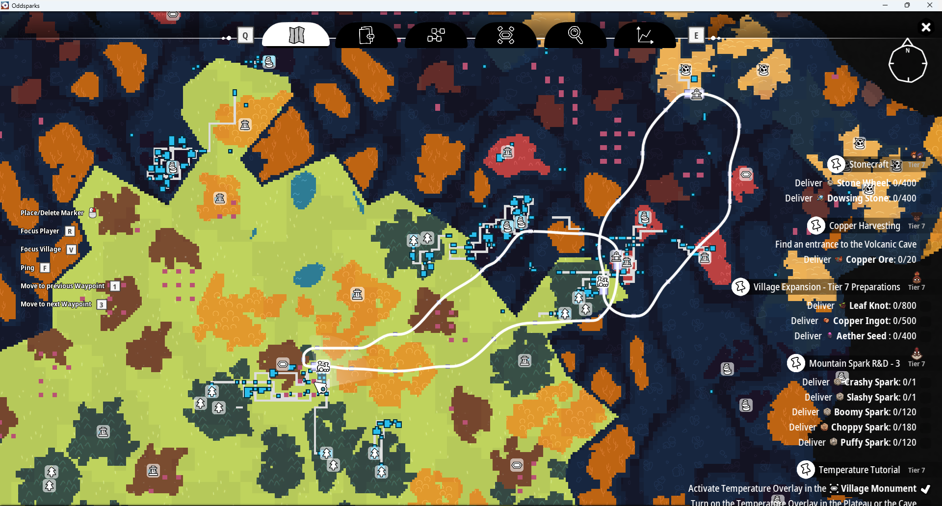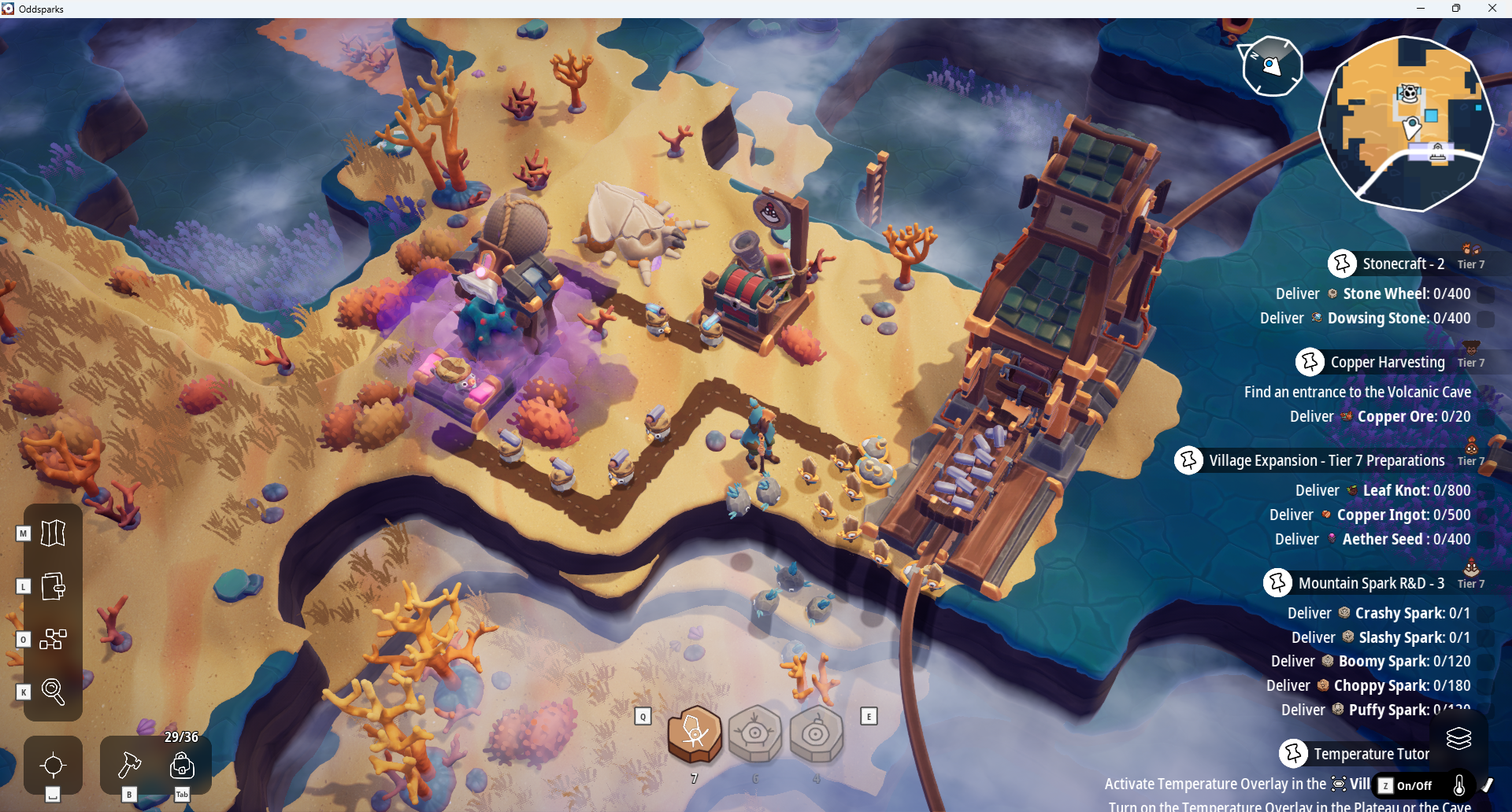 Progression is handled through quests. The village NPCs will give you quests that unlock additional Sparks, buildings, recipes, and more. Most of the quests require larger numbers of items, which incentivizes setting up automated production chains.