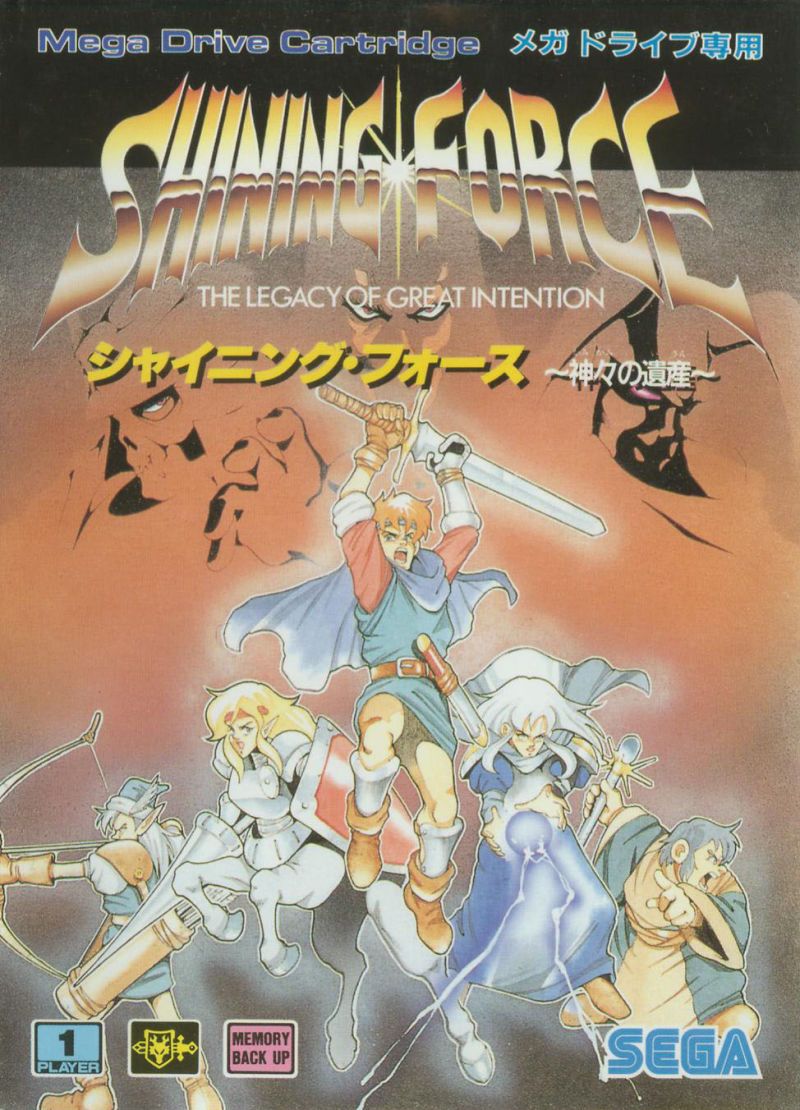 From top to bottom and left to right: Langrisser: The Descendants of Light (1991) box cover art; Langrisser: The Descendants of Light (1991), by Masaya Games; Shining Force: The Legacy of Great Intention (1992) cover art; Shining Force: The Legacy of Great Intention (1992), by Climax Entertainment and Sonic! Software Planning.