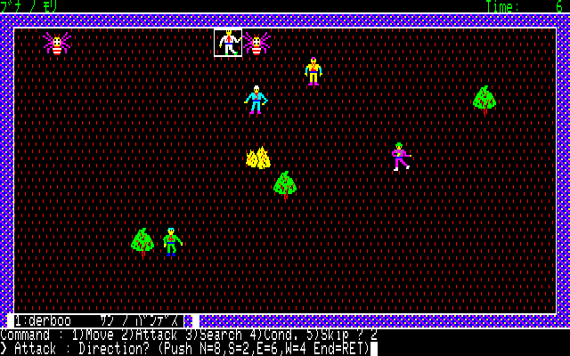 After about a decade of developing these two game genres (RPG and Strategy), a game emerged that is often considered the first JRPG and which is also a precursor to Strategy RPGs (SRPGs): The Dragon and Princess (ドラゴン&プリンセス) for the PC-8001 in 1982, published by KOEI. This game is a kind of tactical RPG prototype, it has RPG elements such as those mentioned above, but with an adventure style, and also tactical planning in moving units around a small-scale battlefield.