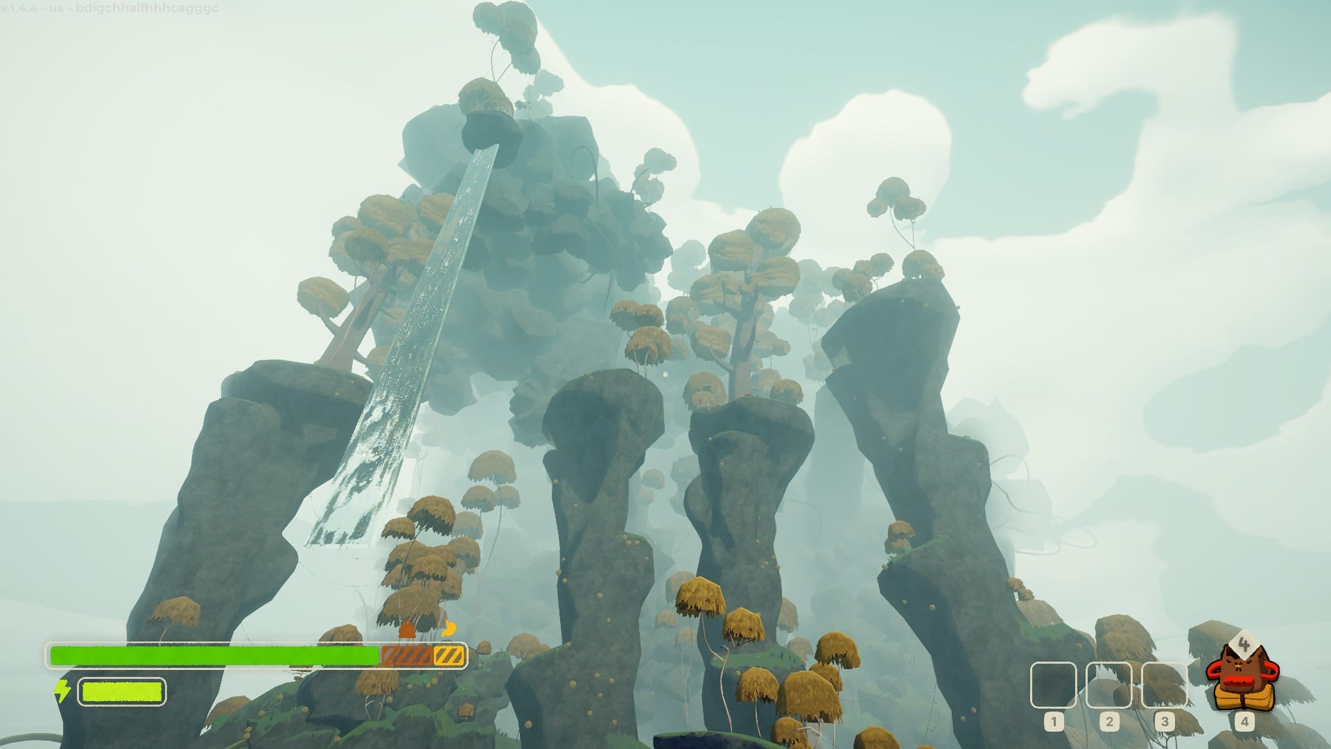 This game reminds me a lot of the few parkour-type games I’ve played in terms of mechanics. There is a lot of climbing, a lot of falling, and a little bit of timing. How high you can climb will depend on how full your backpack is, how hungry you are, whether or not you’ve walked yourself right into a poisoned plant, or even whether or not you’ve already died once (or twice).