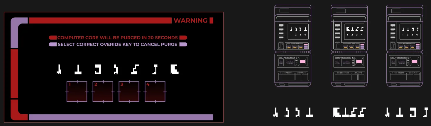 These were built using Auto-Layout, so I was able to quickly paste the text into my component and it would resize automatically. I’d then present these in the viewing area and ask the player who’s interacting with the terminal to read them aloud. This approach to exposition text really helped keep the immersion going.