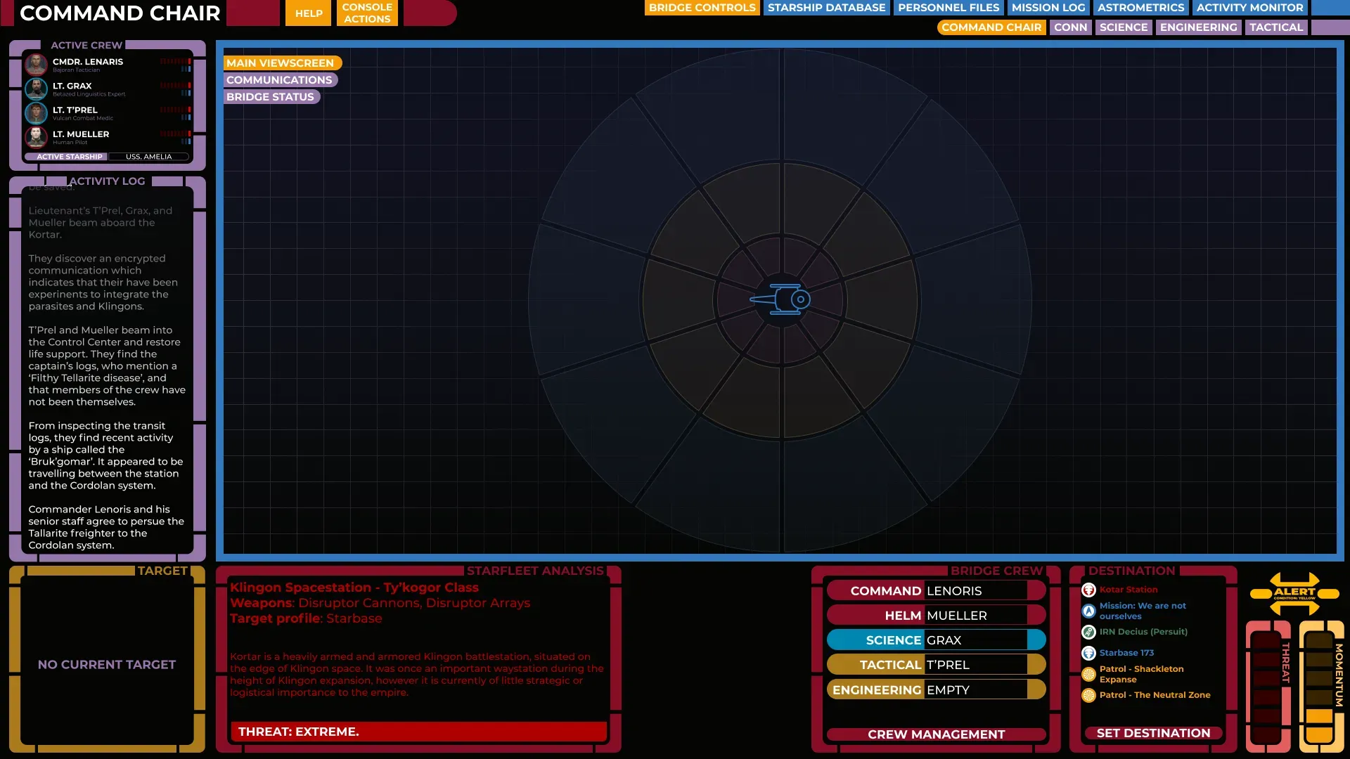 I gave players a new option in their navigation, ‘Bridge Control’, which then asked them to pick a seat on the bridge: