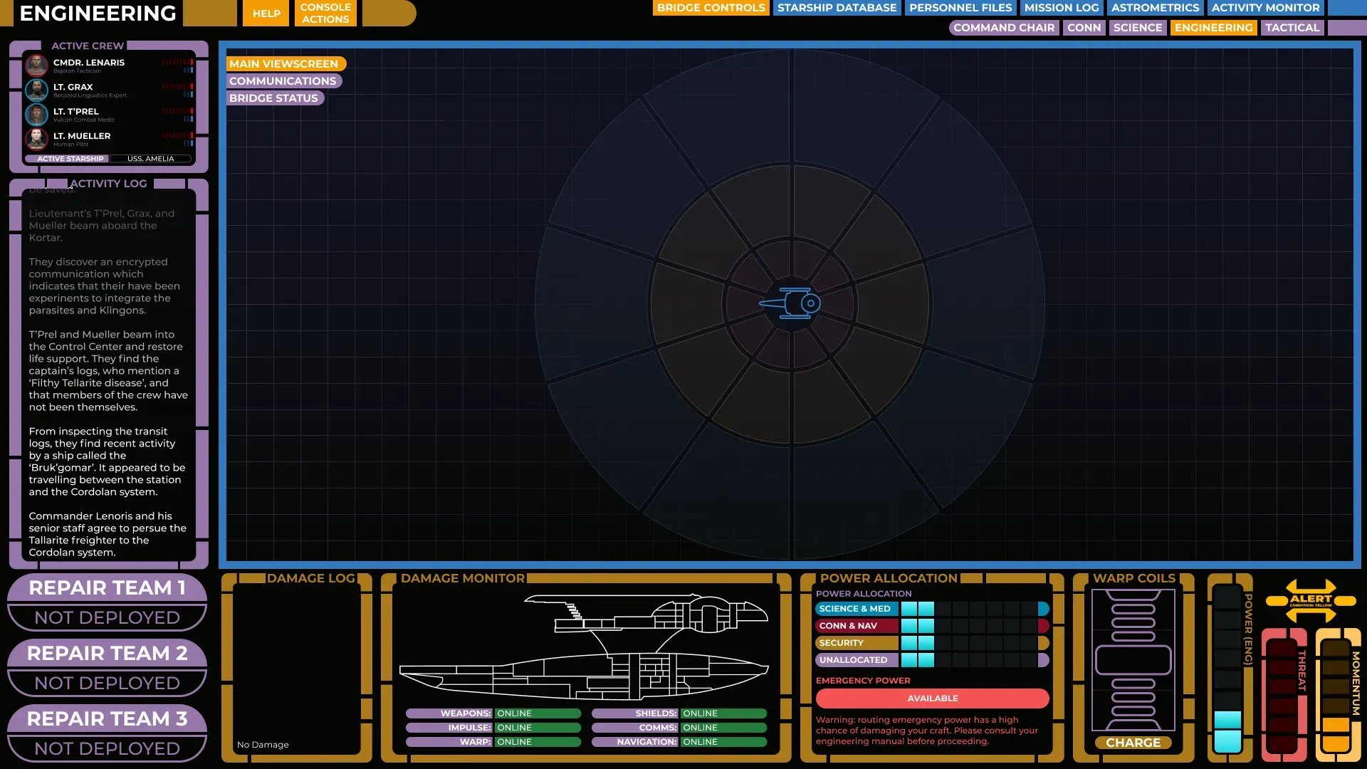 More than anything though, I loved how my players were able to view different screens from each other, rather than me dictating what they were looking at. Having one player managing the ship’s power, while another is reading information on the enemy from the database screen, was a really Star Trek-like experience that would actually be difficult to reproduce on the tabletop.