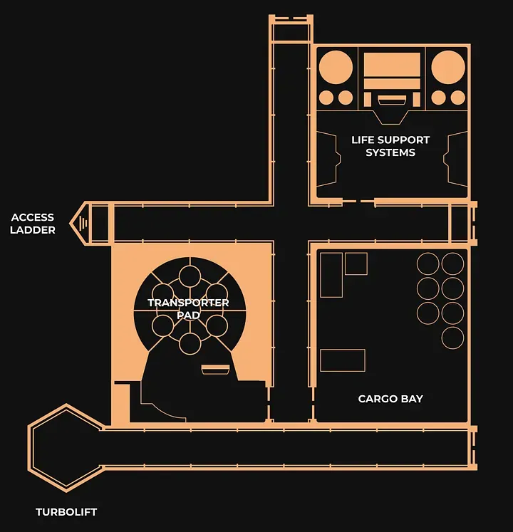 While Modiphius provided a number of gorgeous Star Trek maps on their website, I knew that eventually, I’d need to be creating my own locations and layouts for my players to explore. I needed something quick, easy, and authentic to the Star Trek theme. I created a Star Trek-style tileset for creating my own maps.