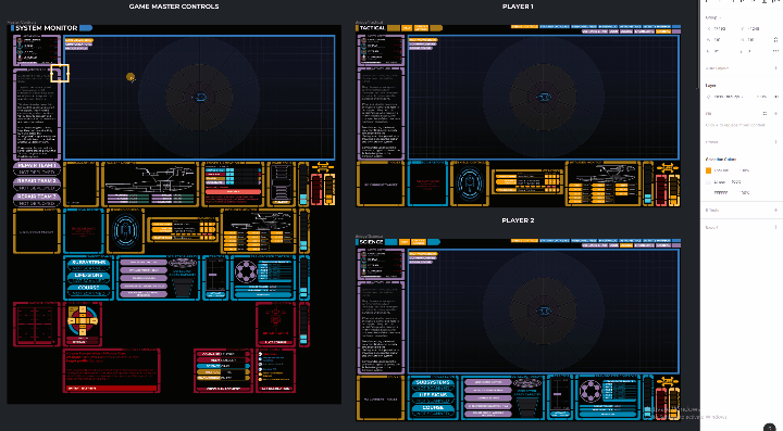 However, Star Trek Adventures is unique in that it includes complex ship-to-ship combat. I thought it’d be a fun and interesting challenge to try and recreate that in Figma also and have each player man their own station on the bridge.
