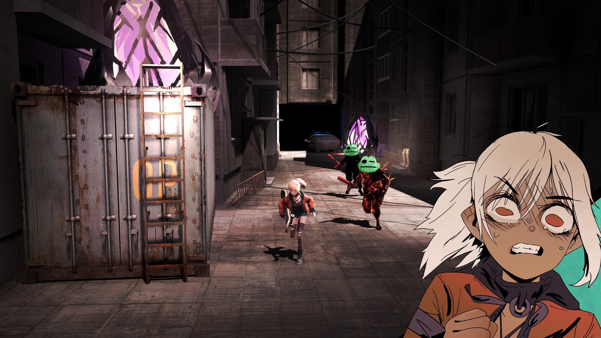 Platforming segments, combat, side-scrolling levels, and even on-rails hallway skateboarding sessions break up the gameplay, as Polly must use everything available to her to survive the cruelties of the demonic plane. Ritualistic segments require puzzle-type ingenuity that blends the aggressive combat with level-based player awareness. One segment is entirely two-dimensional, with Polly traveling back and forth through an increasingly ruined building as she solves puzzles and finds clues pointing to the truth of her past. All the while, new skateboards, masks, and weapon sare available to unlock, adding both cosmetic flair and deadly necessity.