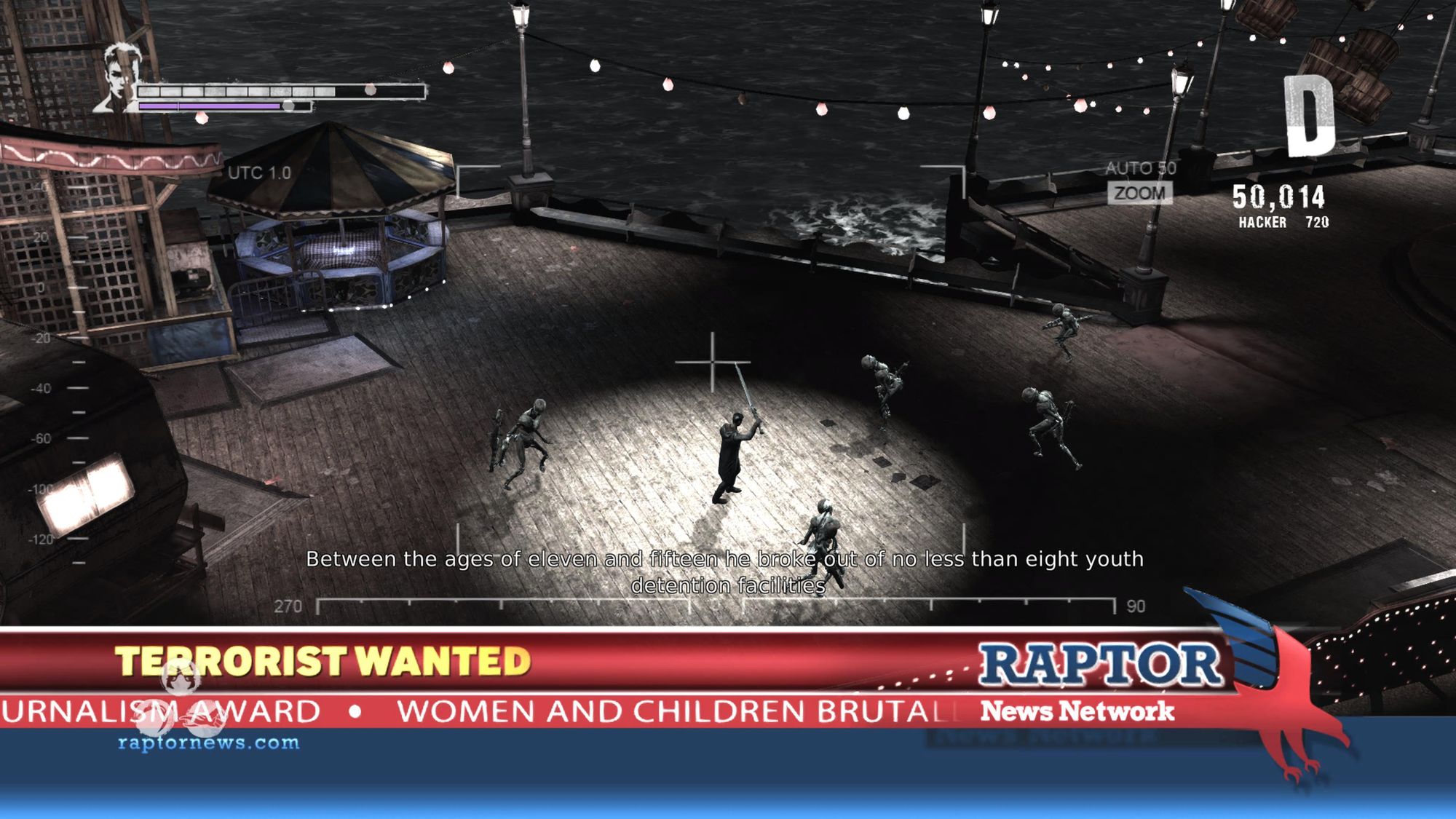 The visual innovation continues when Barbas pulls Dante into old news footage, thrusting him into the chaos of the theme park seen at the start of the game. Facing a horde of demons, Dante finds himself at a disadvantage with the screen stuck in an extremely wide, overhead tracking shot. The camera mimics the POV of a news helicopter, leaving Dante appearing small and making combat more challenging.