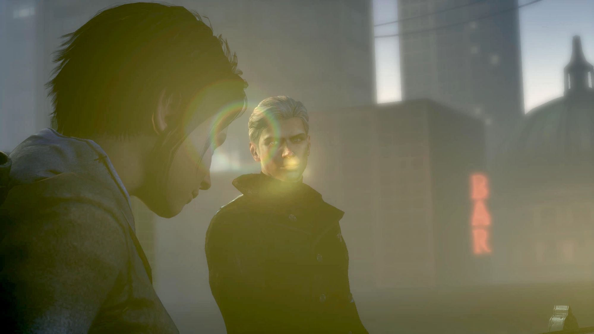 As Vergil and Kat prep Dante to storm Bob Barbas’ tower in “Overturn,” he witnesses their dynamic. As Kat shares her worries about the mission and looks at Dante with concern, the camera cuts to Vergil watching her. A lens flare lives between both Vergil and Kat’s faces, partially obscuring slivers of their expressions, but Vergil’s displeasure is clear. Lens flares, while popular in the film industry, are nothing more than technical errors in filmmaking. To see it digitally appearing between the two marks the moment when Kat is viewed as a mistake in Vergil’s grand plan and reveals a certain possessiveness toward both Kat and Dante – Kat, who reveres him and is a follower in the movement he has created, and Dante, his sibling.