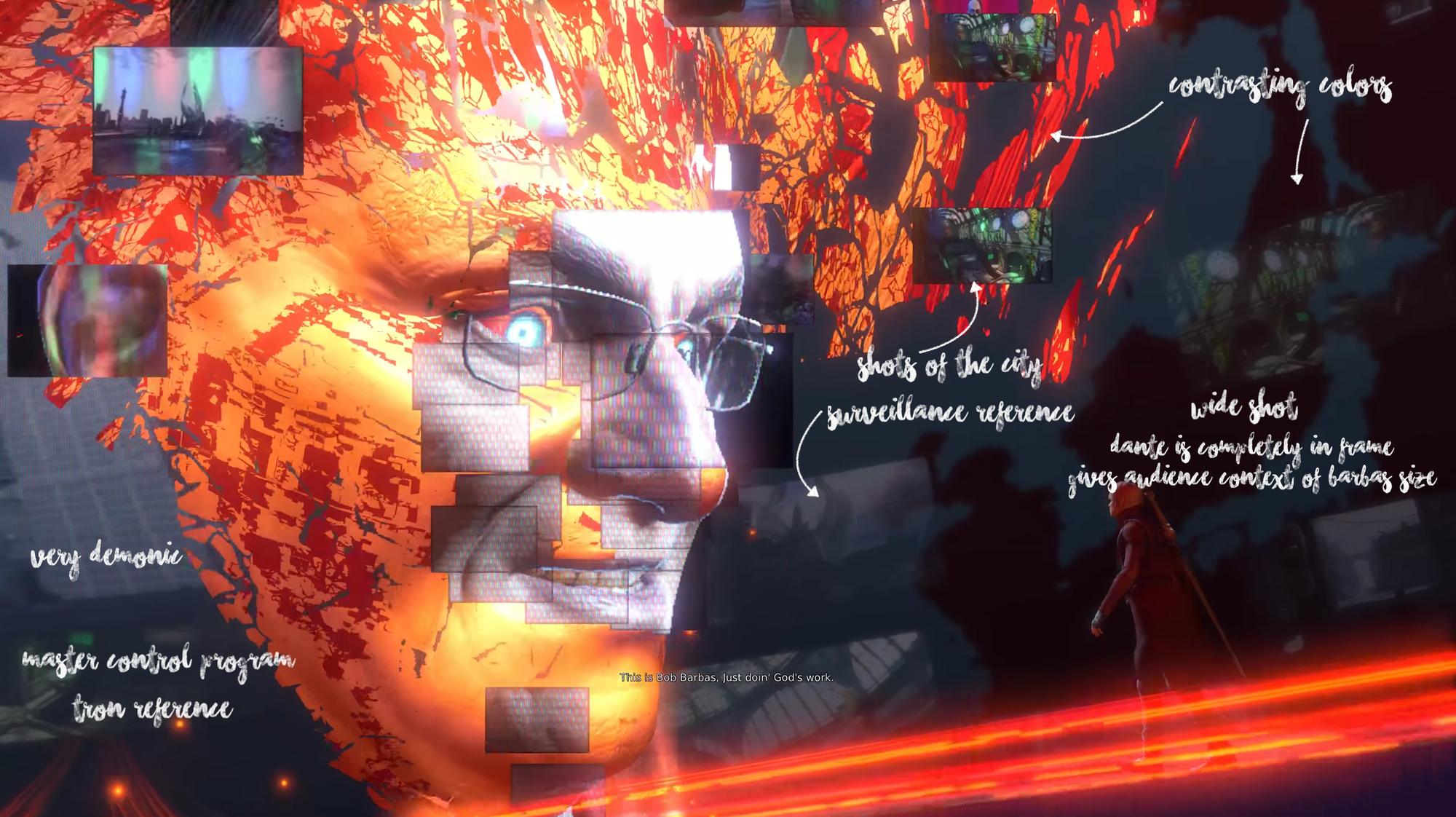 What makes Raptor News’ favorite reporter truly terrifying is that he draws upon influential figures we encounter in our world today, illustrating a disturbing truth. This is why I deeply enjoy the featured shot, as it fully encapsulates Barbas' role in the grand scheme of things. While Dante can physically strike him, Barbas is not a physical threat in the way Mundus and his cronies are. Barbas embodies the culmination of 'Big Brother is watching you', propaganda, and buzzwords, all masterfully displayed. It's why defeating Bob Barbas and Raptor News feels like a hollow victory. After all, how does one undo the brainwashing of an entire city?