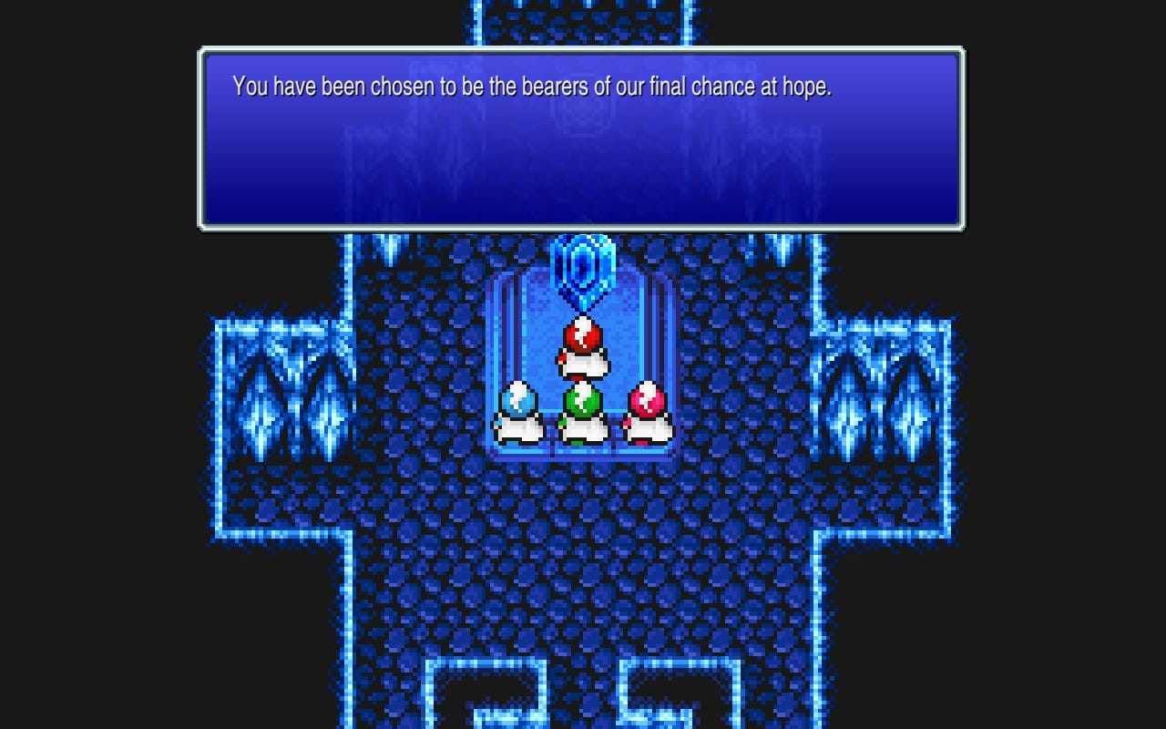 In Final Fantasy III, you create four heroes of light who are destined to defeat the encroaching darkness on the land. They stumble upon the first crystal of light and learn that this fated meeting would gift them the power to push back against evil, the power to get a job. Not the type of job with a retirement plan or a 9-to-5 schedule; these jobs allow our heroes to specialize in various forms of combat that will help them face adversity in their travels. The heroes are instructed to go out and defeat evil and defend the light against the darkness seeking to overtake the land.