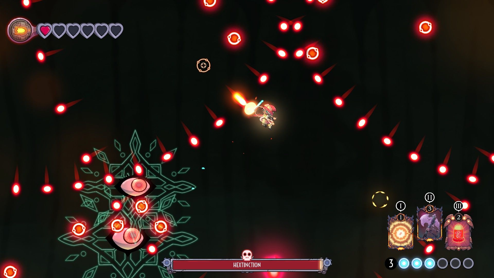 Everything feels balanced in the beginning, but as the game goes on, and especially in the final quarter, the mix of Metroidvania, bullet hell, and deck building starts to show some issues.