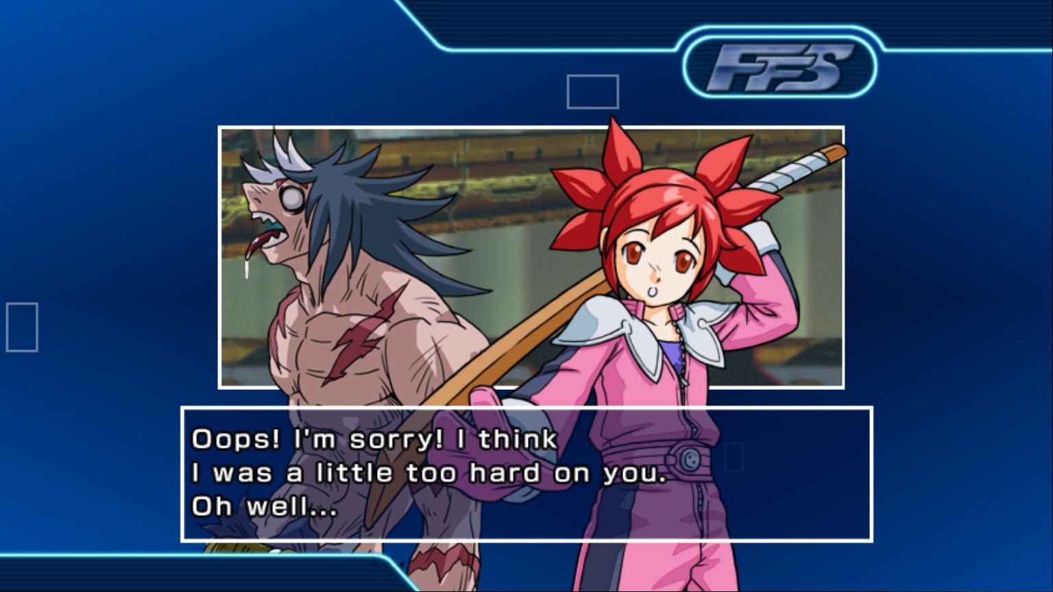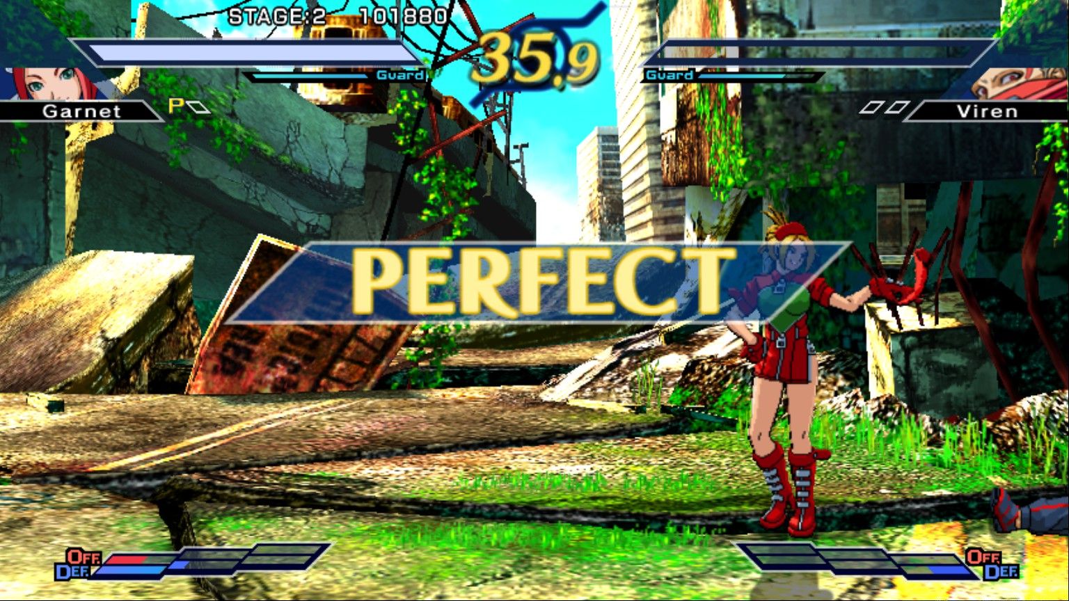 Like most fighters in this genre, The Rumble Fish centers around an illegal fight club. There is an incredibly well-done, flashy anime intro trailer introducing the characters, all dwellers of Zone Prime. The game includes sixteen characters, three bundled in the collector's edition. Greed, Beatrice, and Hazama can otherwise be purchased as DLC. You will have all your traditional fighter archetypes: grappler (Orville), zoner (Bazoo), shoto (your most well-rounded character, this would be Zen), and rushdown (Garnet), among many more.