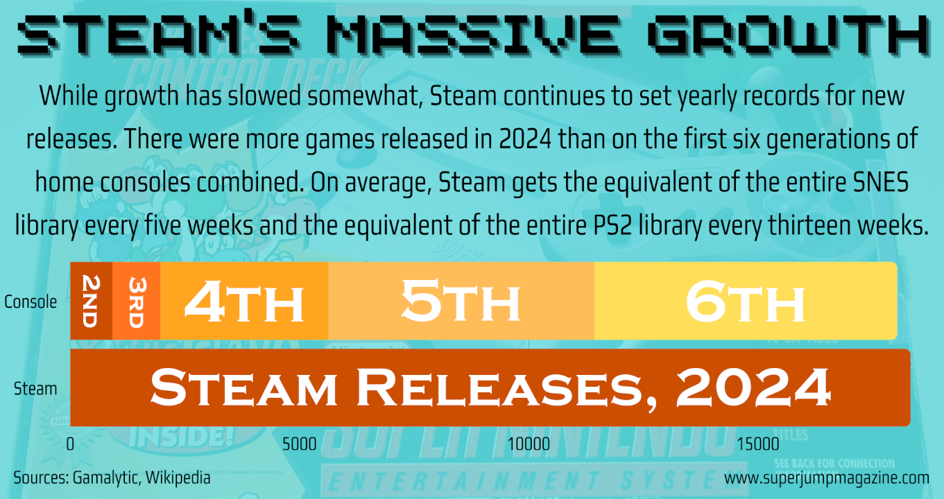 The growth of the Steam library is an evergreen topic. The rate of growth is slowing down, but 2025 is still likely to be another record-setting year, with the total size of the library approaching 150,000 titles. On average, more than 300 games hit the storefront each week. The launch window for a game is important for most indies, so dropping that game in a strongly competitive week can have brutal consequences.