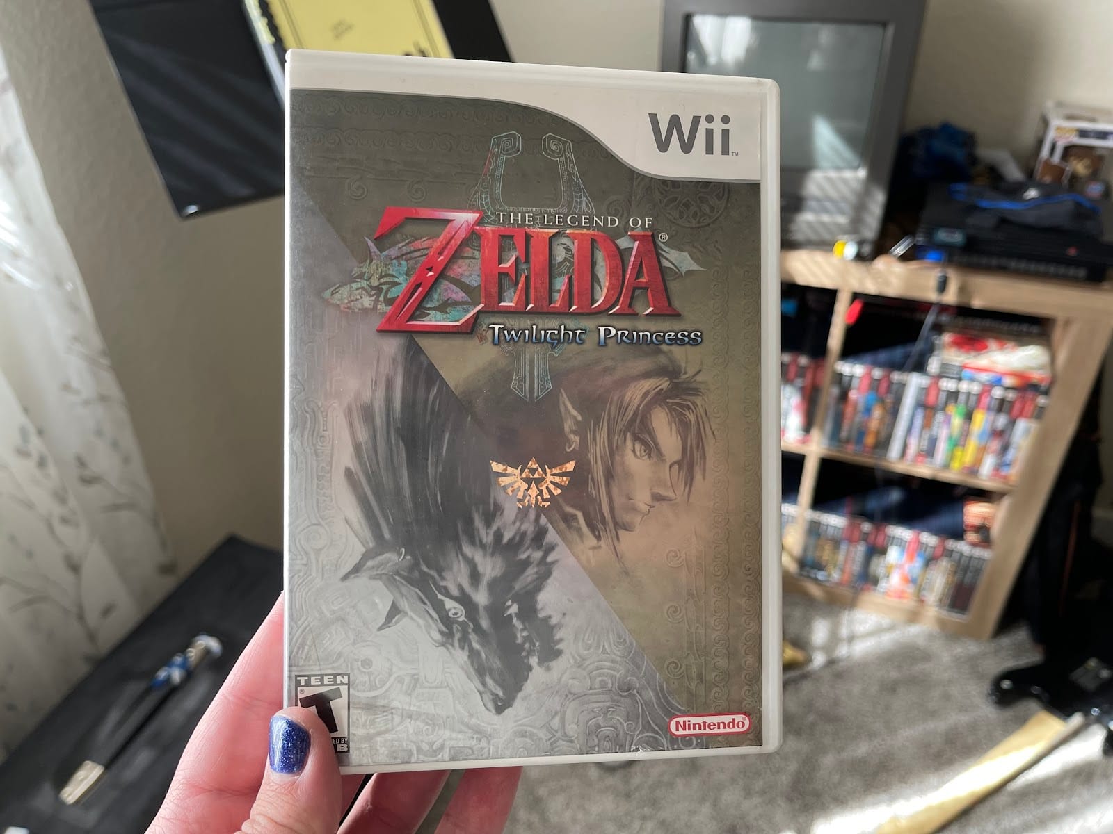 I present my copy of the Wii version of The Legend of Zelda: Twilight Princess. I remember my first experience with this game. I was at the house of one of my mom's friends as a kid, and I didn’t have too many people to hang out with at the time. I was just eating some party snacks or something, and upon entering the living room, they had a copy of Twilight Princess just sitting on their Wii. Immediately, I was sold by the foil art cover. Being a PlayStation kid, I had no idea what The Legend of Zelda even was at the time, but I had only ever seen two other boxes that looked nearly as good as this one: Kingdom Hearts and Kingdom Hearts 2, my favorite games ever at the time.