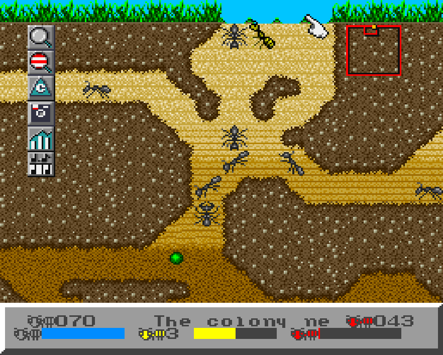 After all that chaos, it’s time for some zen. Sim Ant was the first simulation game I ever played and just scratched the surface of what I wanted it to be. You play as a chirpy little yellow ant (to decipher yourself from the many black ants) that sets up a colony with the queen ant. You dig tunnels and tend to her eggs, arranging them in neatly until they hatch. Once hatched, you command your drones to the surface to fetch food for the colony. With enough soldier ants, you make your way across the garden to ambush the red ant queen!