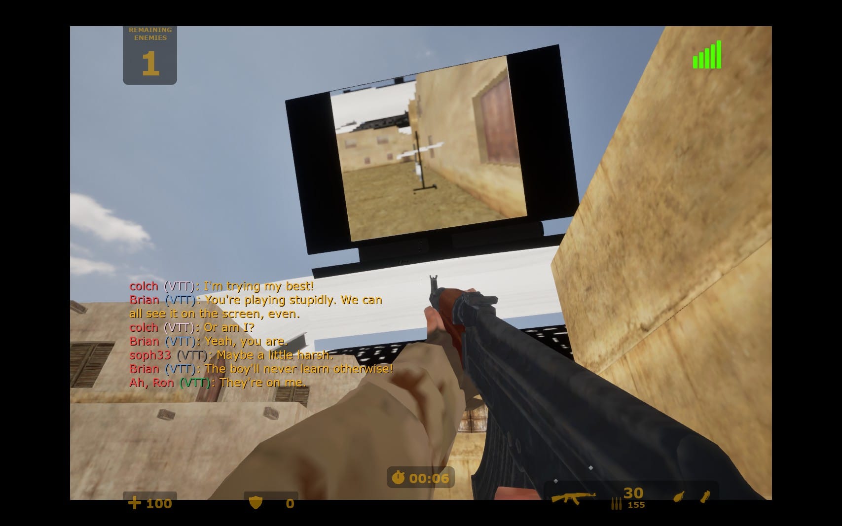 It Takes A War - the new game from Thomas Mackinnon, developer of The Corridor - opens in a way that few single-player games do: by pretending to check your Internet connection and microphone before dropping you into the first round of a fake, Counter-Strike-inspired deathmatch game.